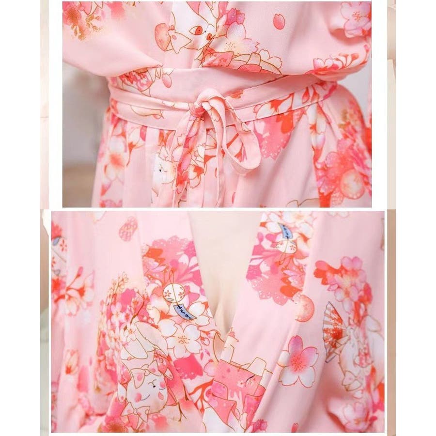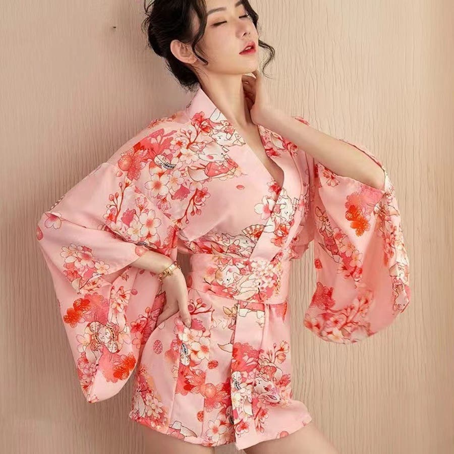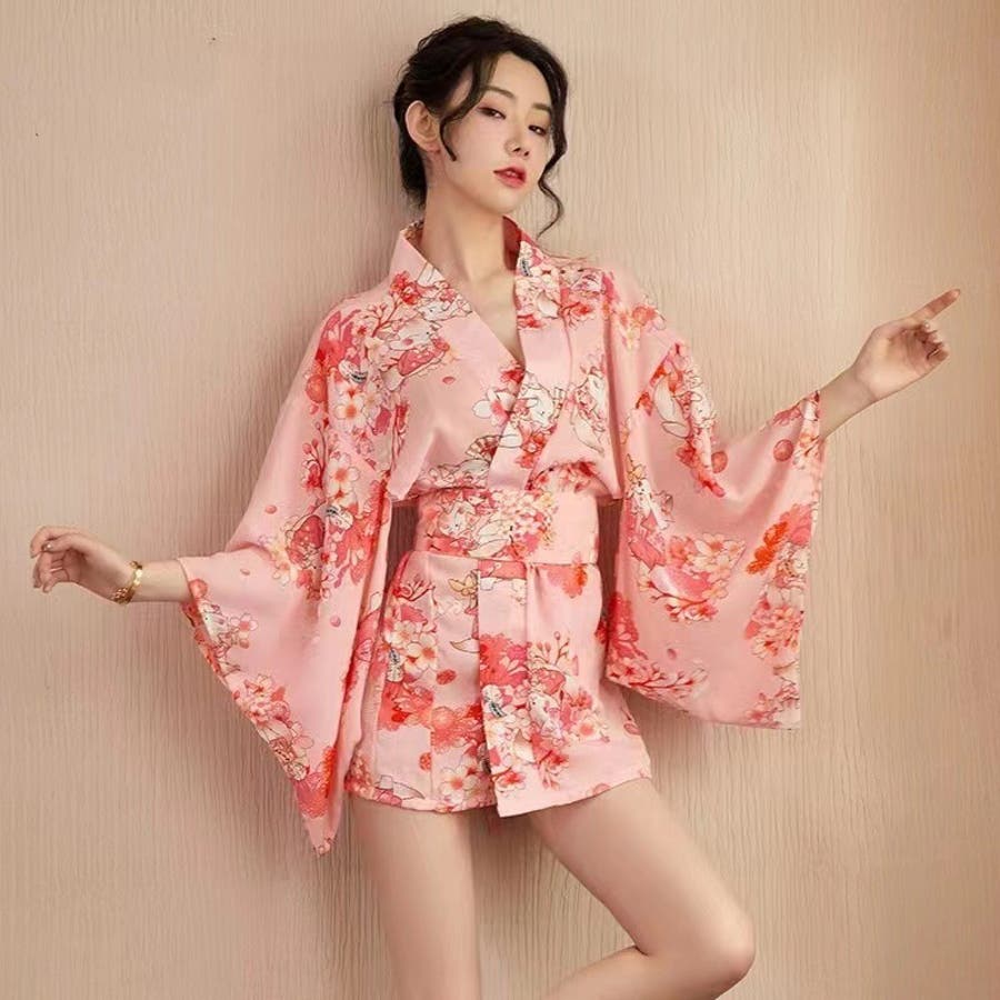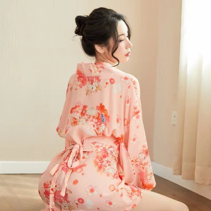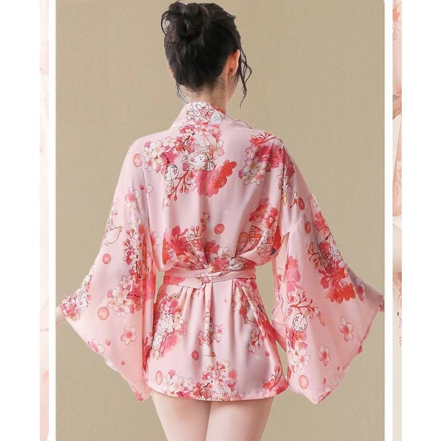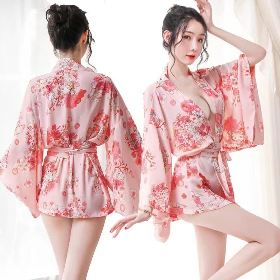 着物風の羽織タイプのナイトガウンとTバックショーツとベルトがセットです。