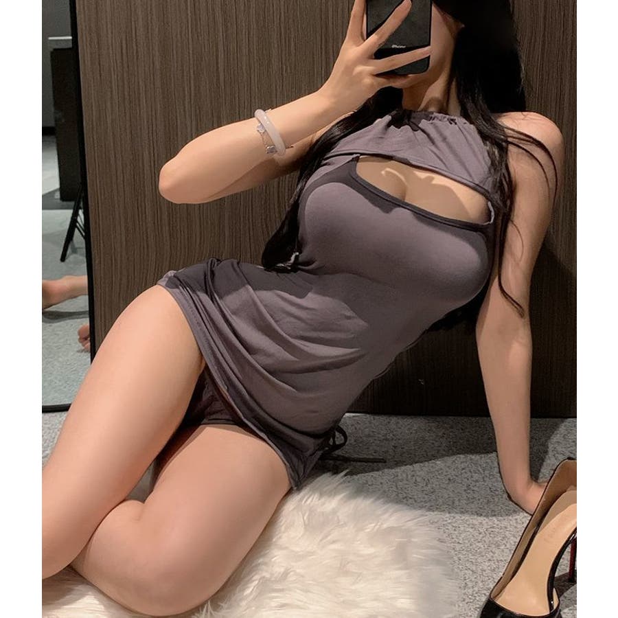 ミニ丈でタイトなシルエット、胸元が大胆にあいたデザインが魅力的♪