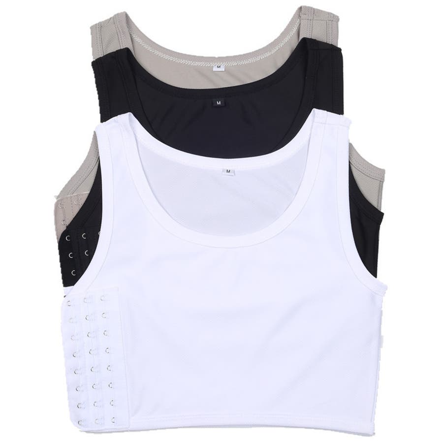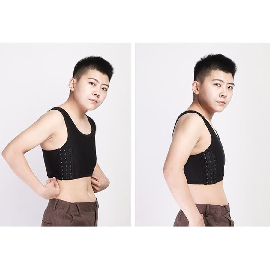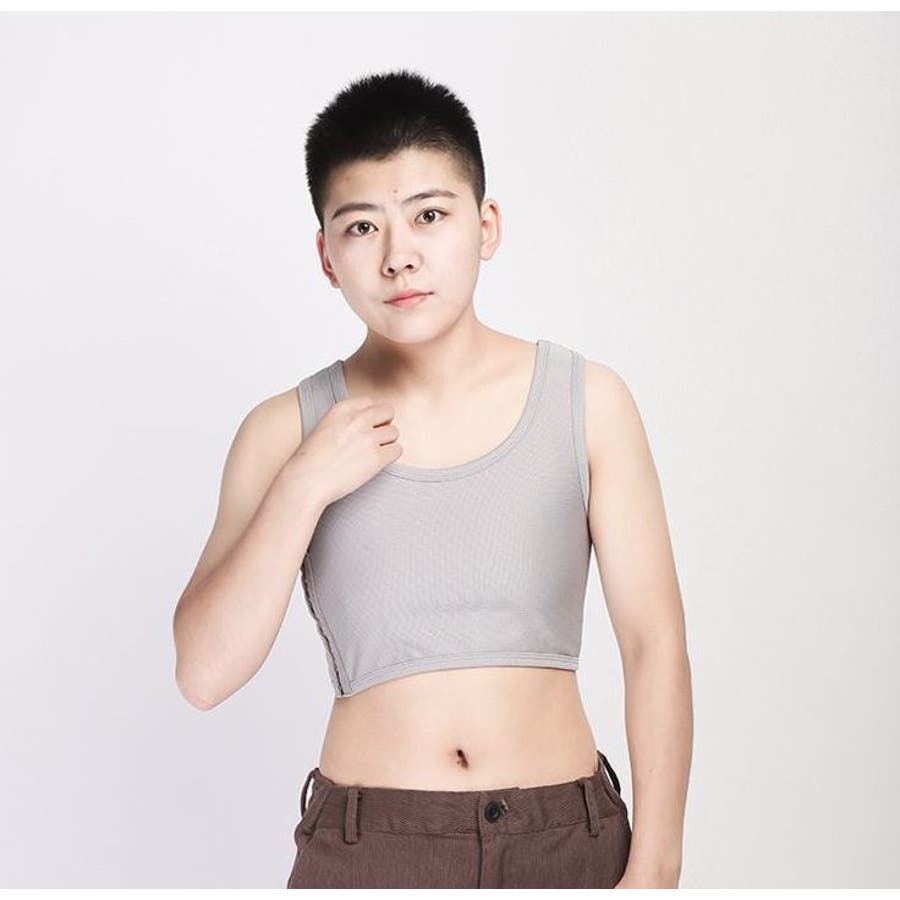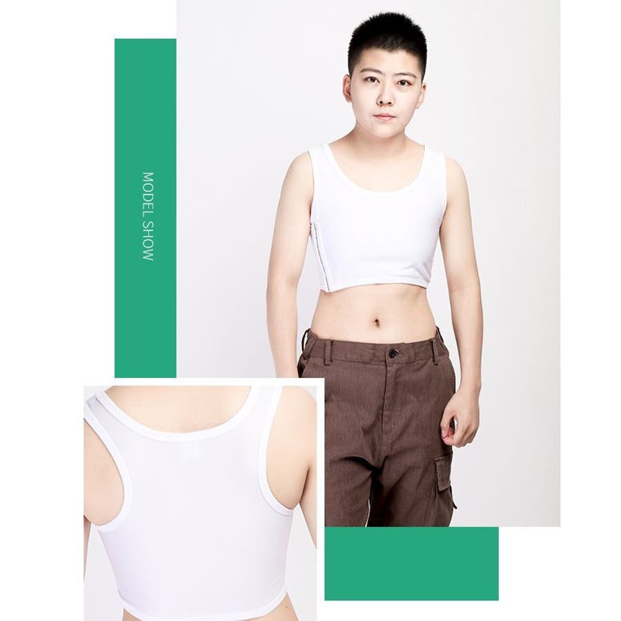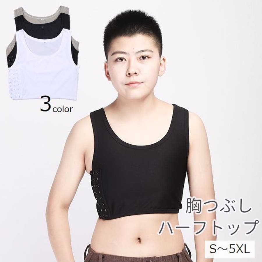 バストを目立ちにくく押さえてくれる胸つぶしハーフトップです。