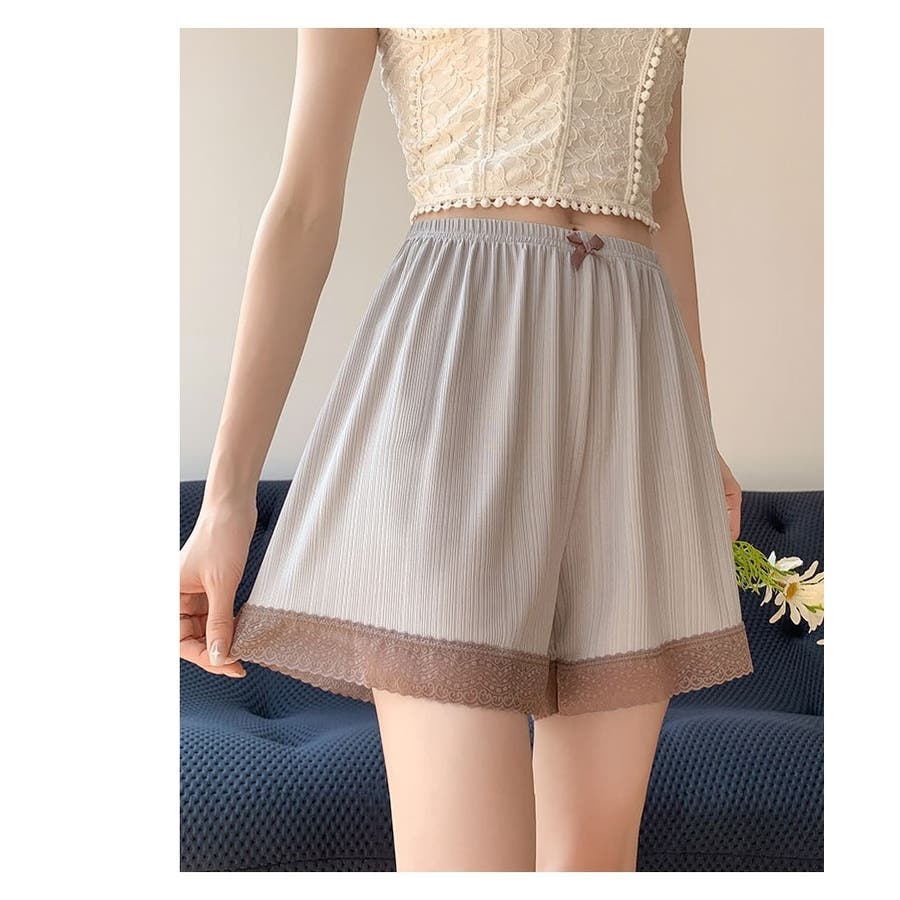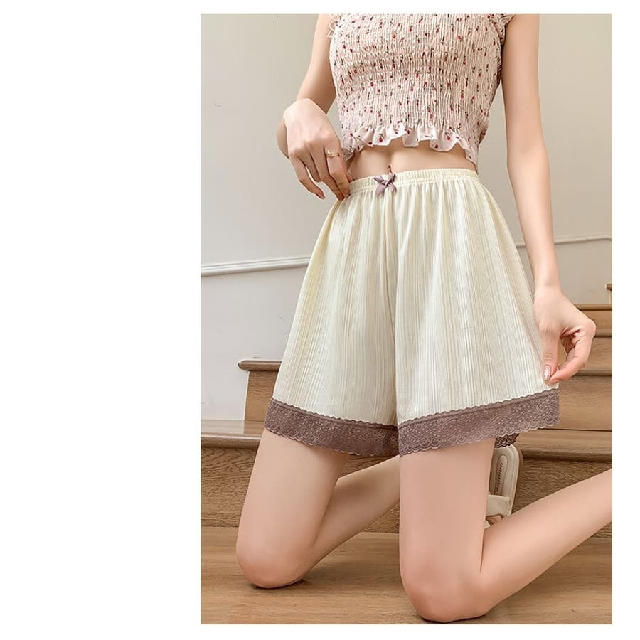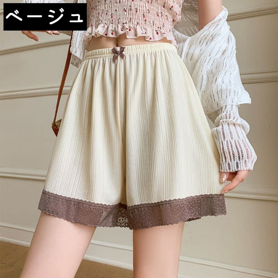 リボンと裾レースがシンプルでかわいいレディース用ぺチパンツです。