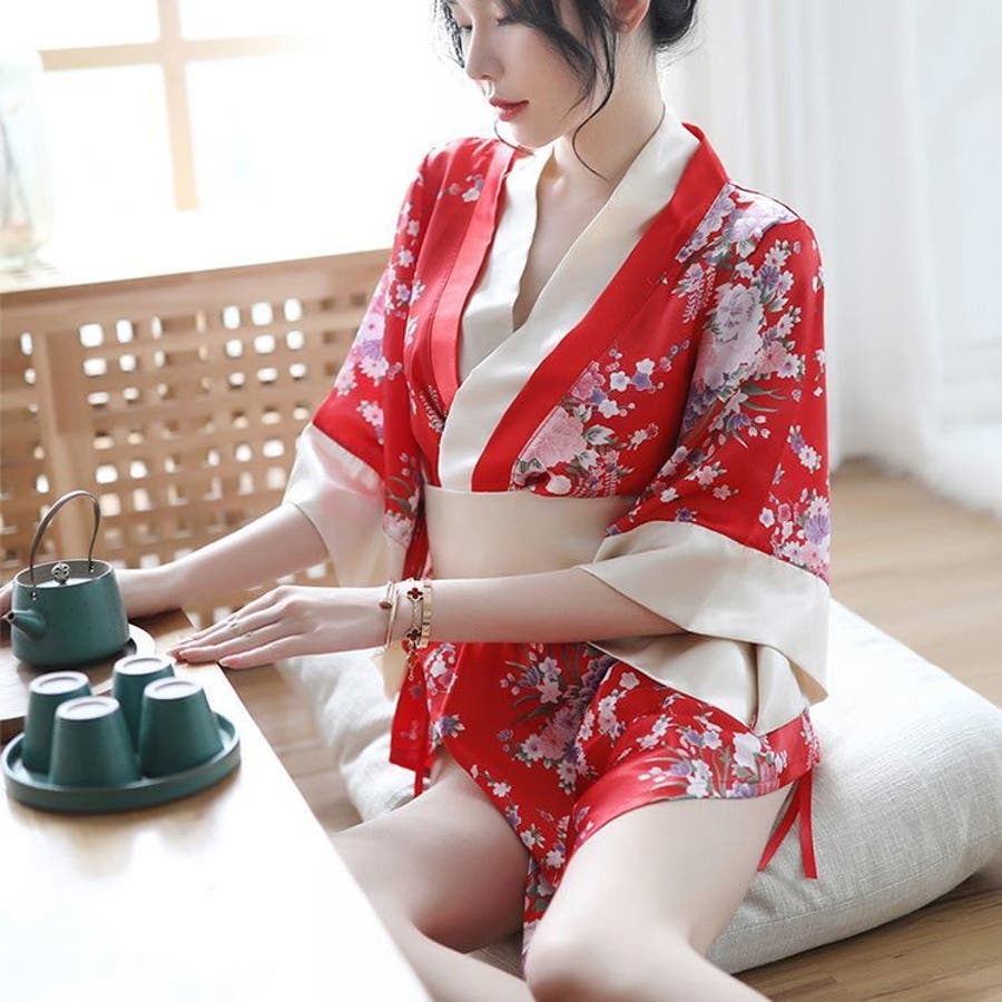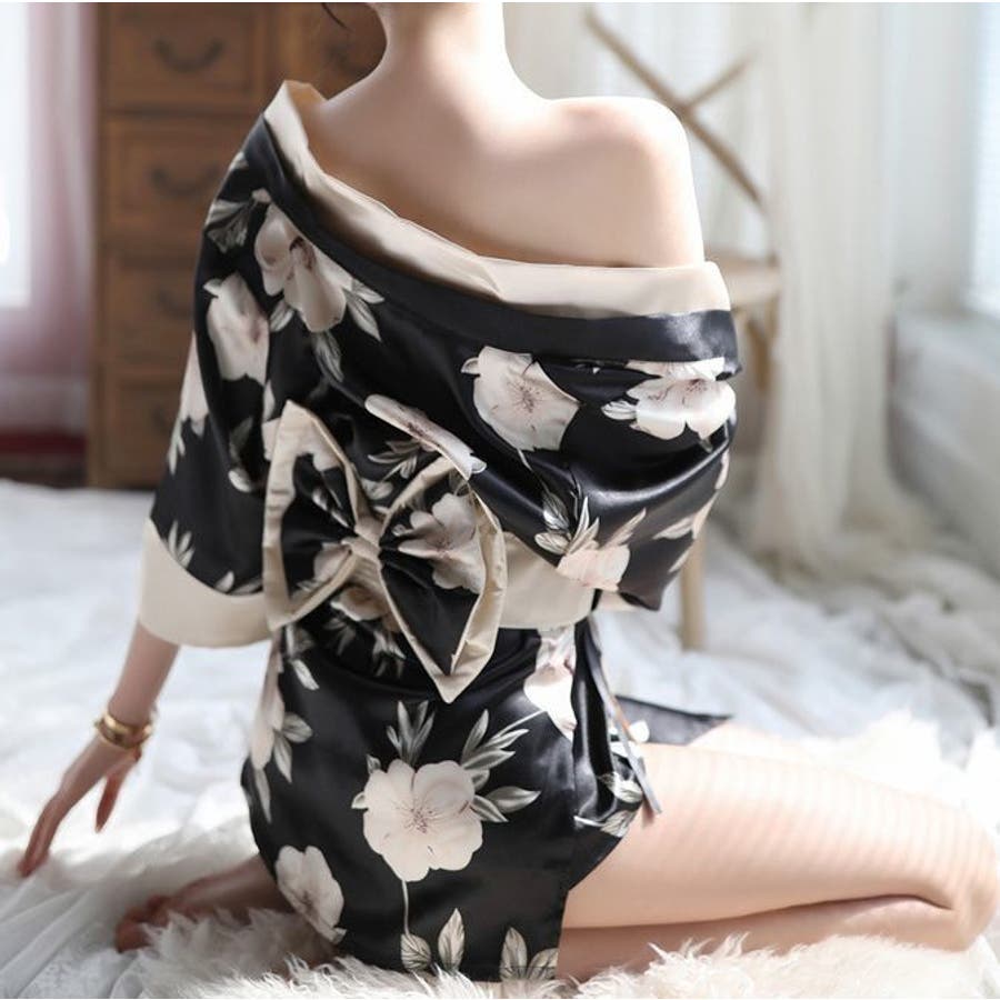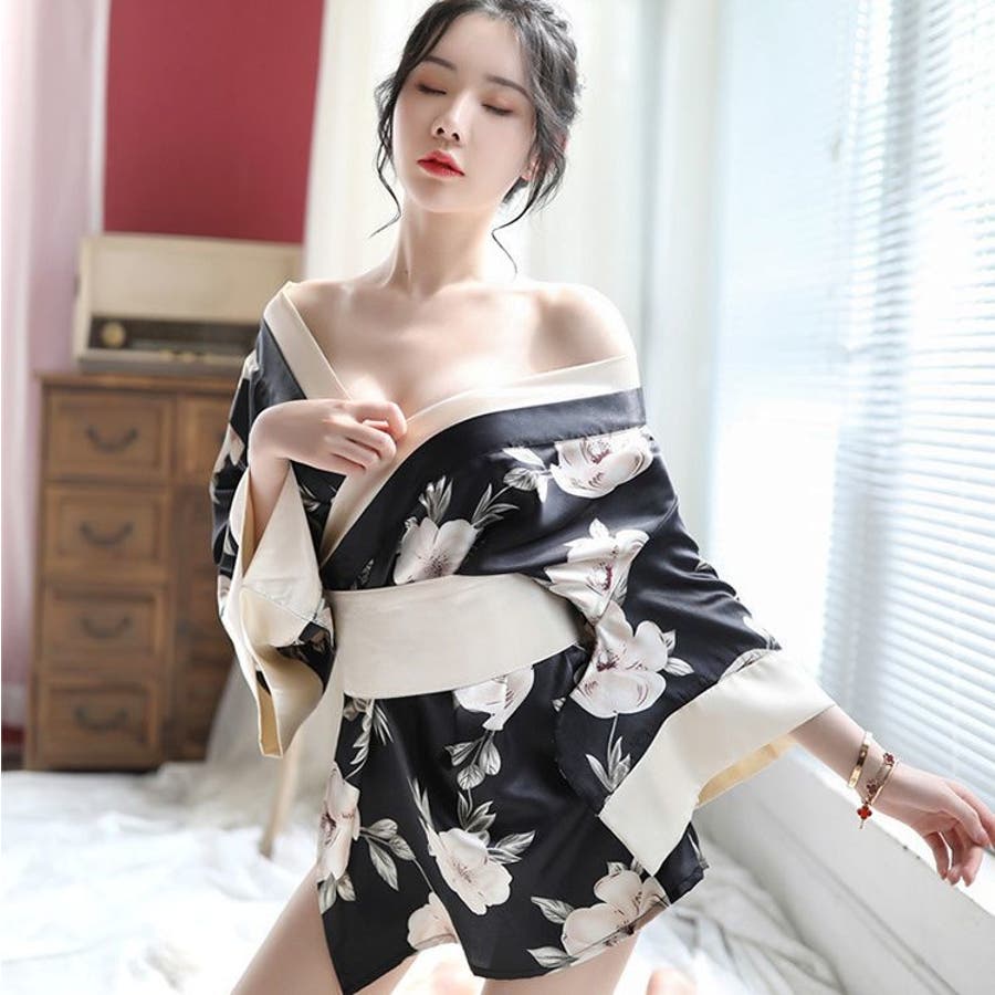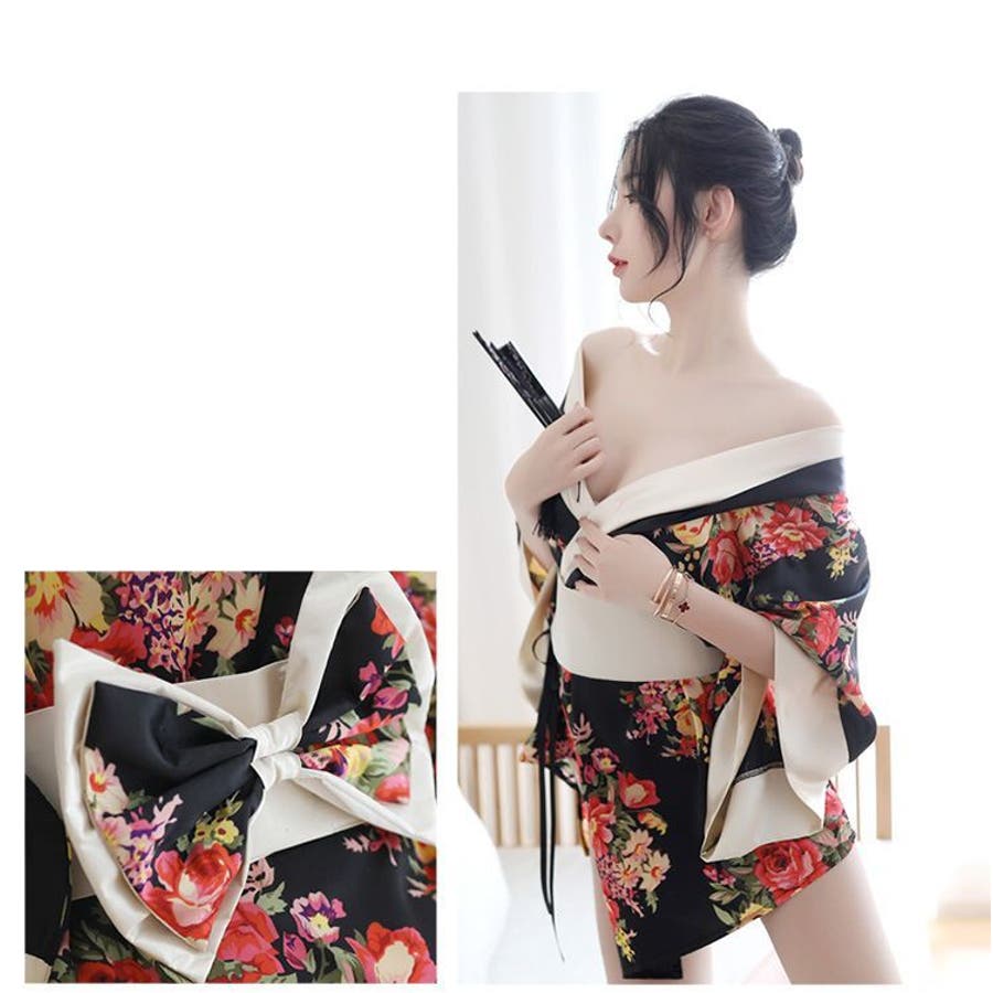 着物風の羽織タイプのナイトガウンとTバックショーツとベルトがセットです。