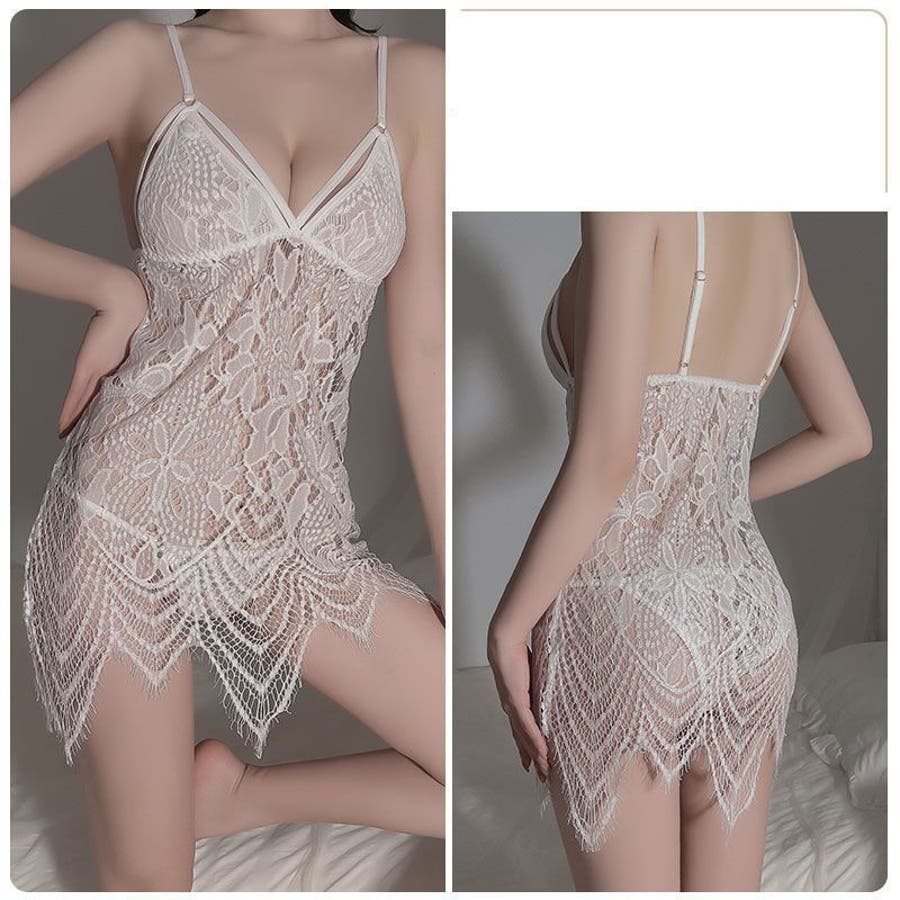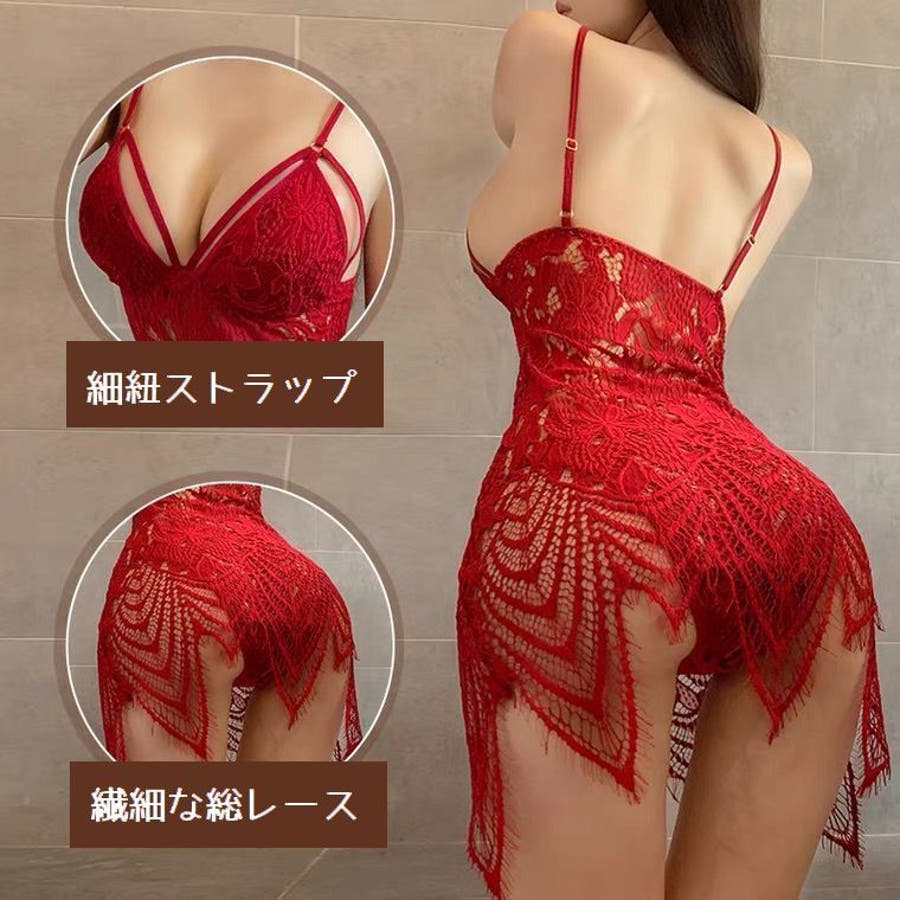 胸元の細紐のデザインも透け感のある上品な総レースも