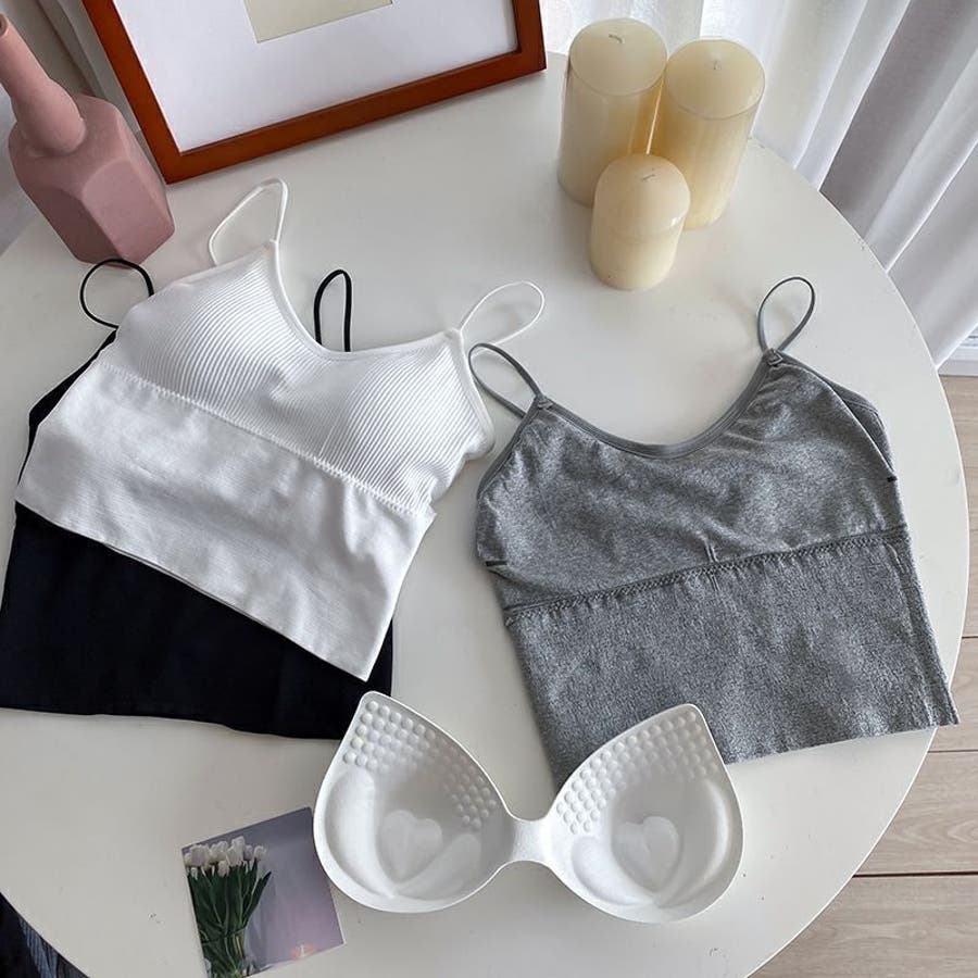 細めのストラップ(肩紐)でインナーとしてもトップスとしても着れるデザインです。