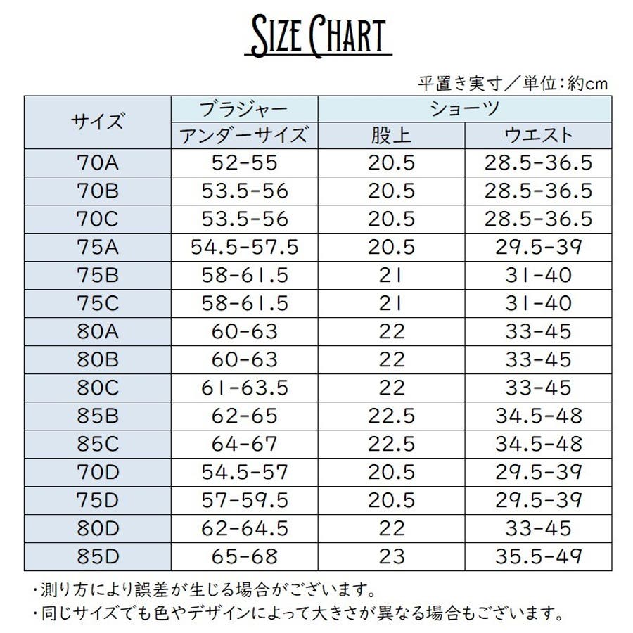 | サイズ | 70A【32A】 / 70B【32B】 / 70C【32C】 / 70D【32D】 / 75A【34A】 / 75B【34B】 / 75C【34C】 / 75D【34D】 / 80A【36A】 / 80B【36B】 / 80C【36C】 / 80D【36D】 / 85B【38B】 / 85C【38C】 / 85D【38D】 |