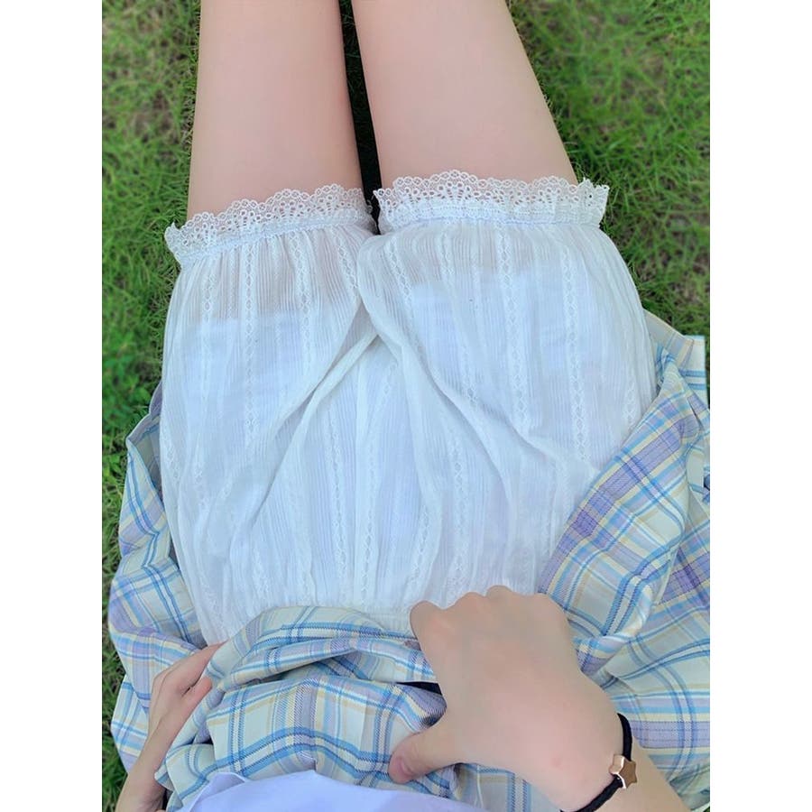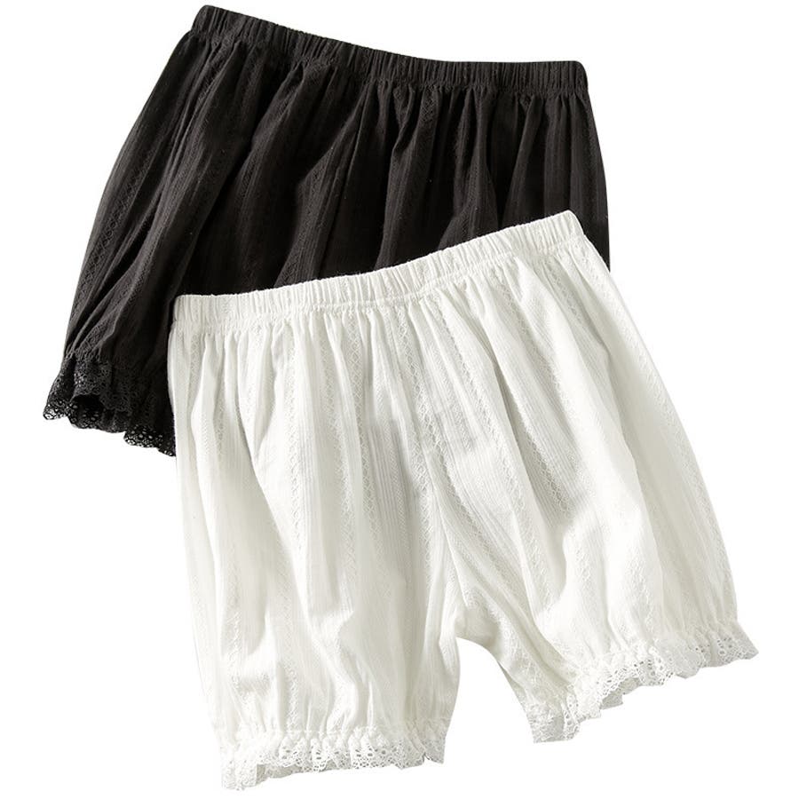 白いワンピースの下に履くものが欲しくて買いました。生地が薄いので夏に履いてても問題ない感じです。文句無しで可愛いです。