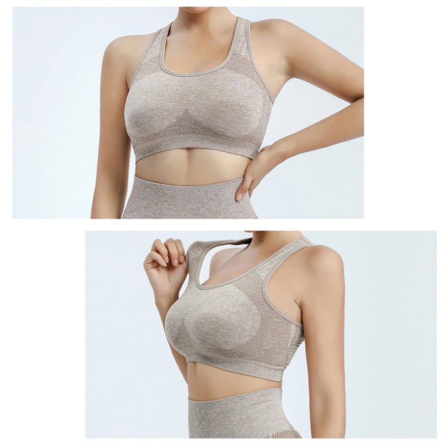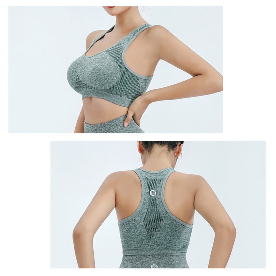伸縮性のある素材で、運動中もしっかりサポートし、バストの揺れを防いでくれます。