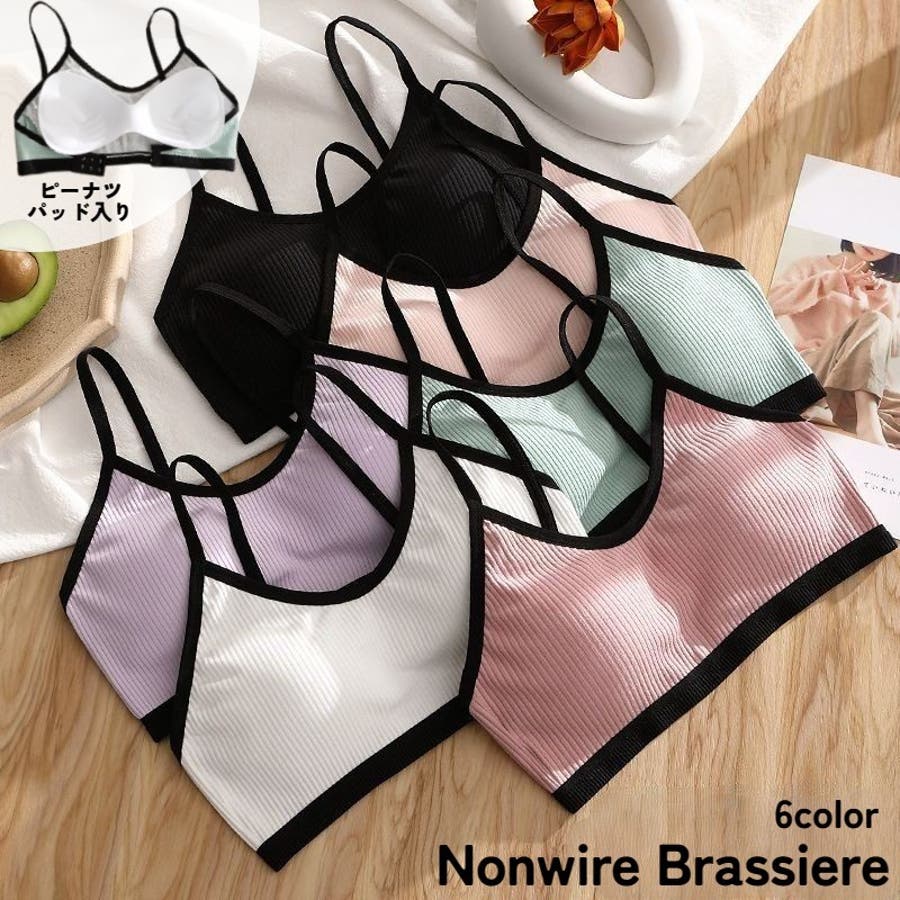 おうち時間 運動 楽ちん 3段ホック リラックス ピーナツパッド カップ付き 取り外せる 無地 ホワイト ブラック 白 黒 ピンク