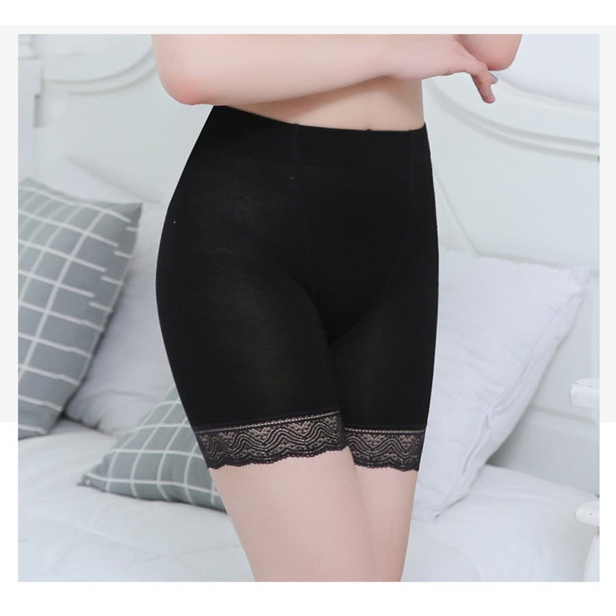 生地に収縮性があるので履いていても楽です。また、丈にあるフリルと生地の切替部分がキツくないので、立ったり座ったりする時にキツくないのでよかったです。