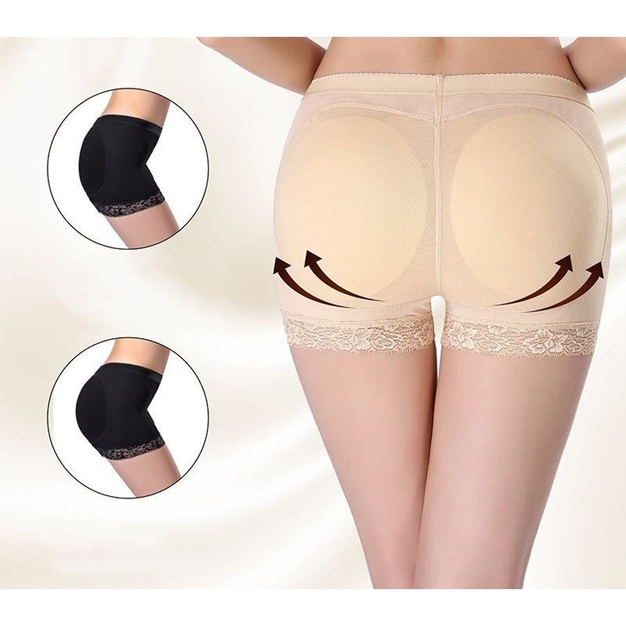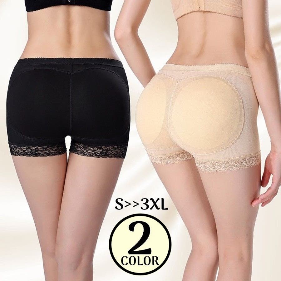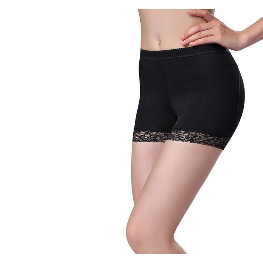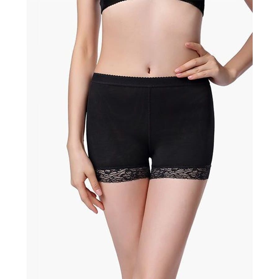裾の花柄レースが大人可愛い☆無地のボクサーパンツ型ヒップアップショーツです。