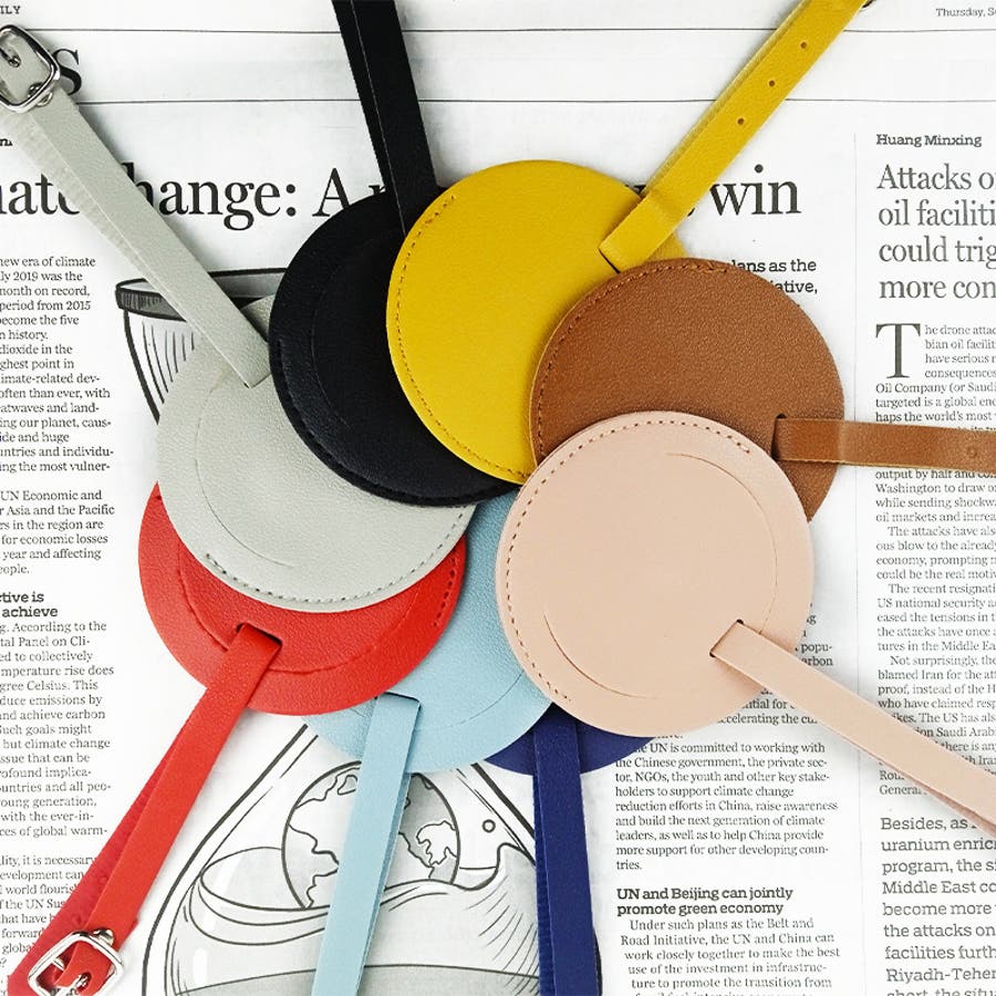 ストラップ付きのPUレザー製ネームタグ同色2枚セットです。