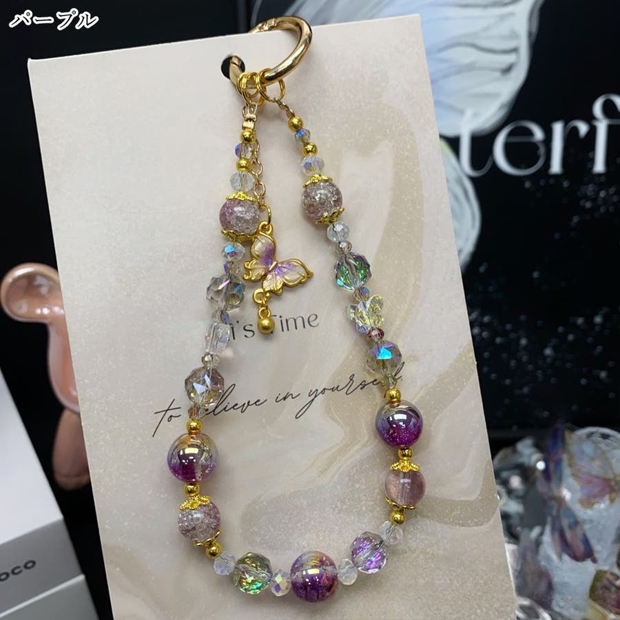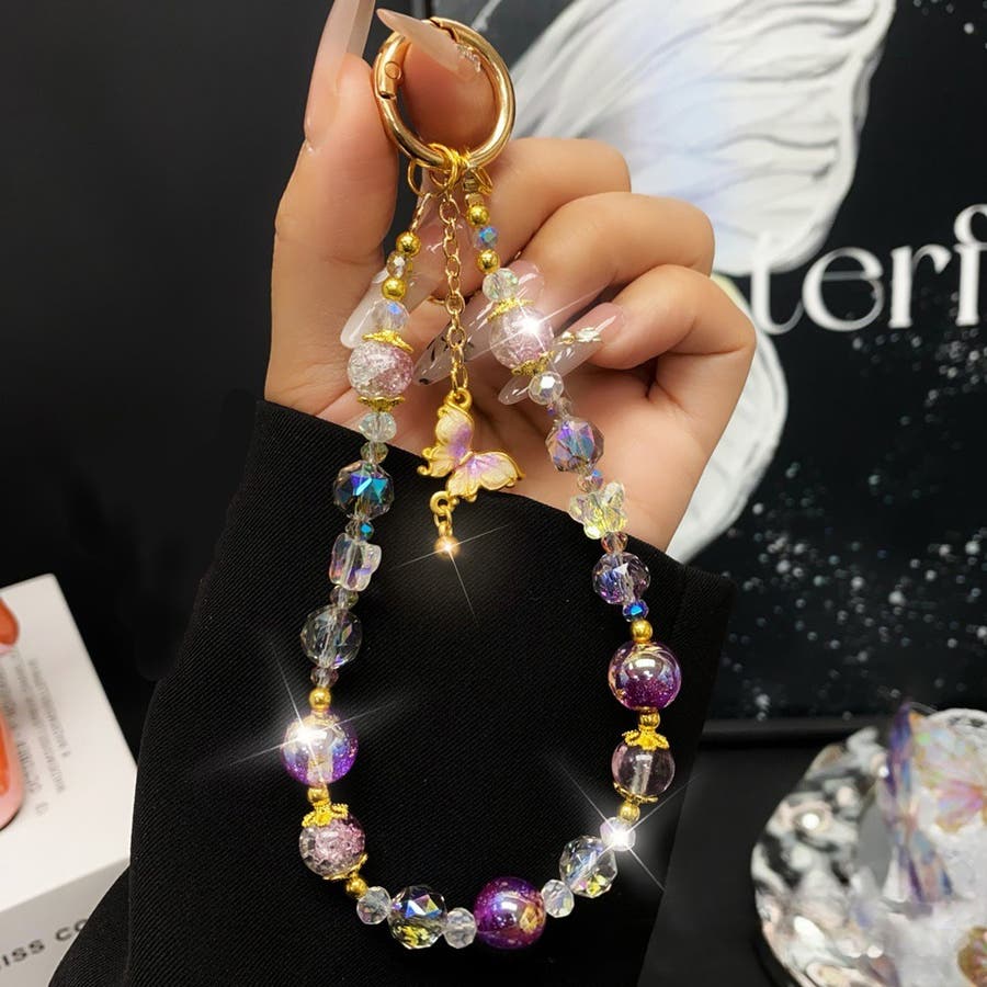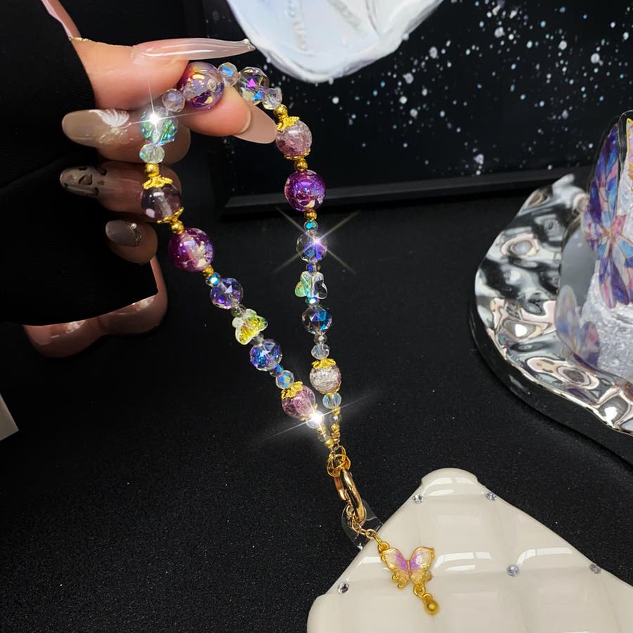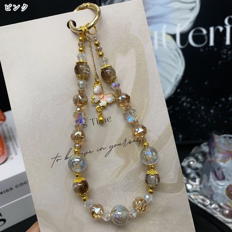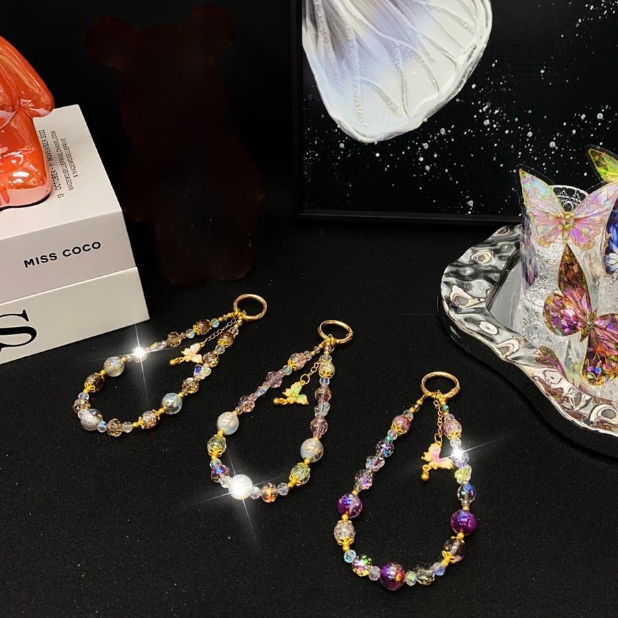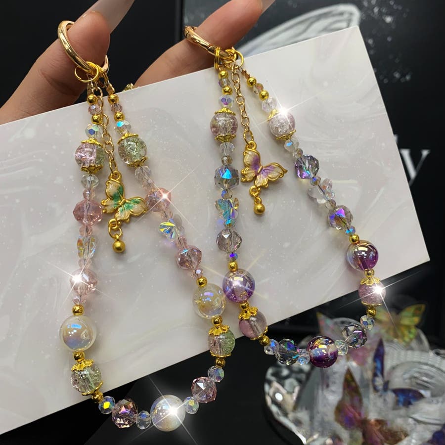 大きめのビーズや、蝶のチャームがとってもキュート。