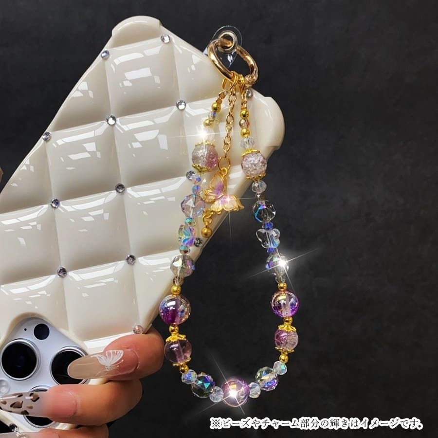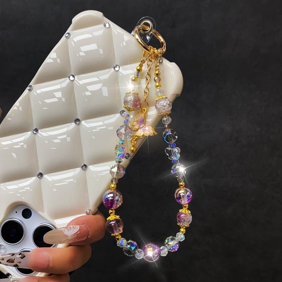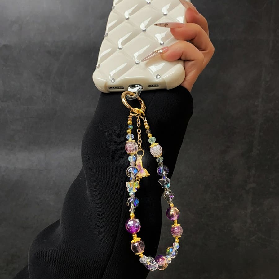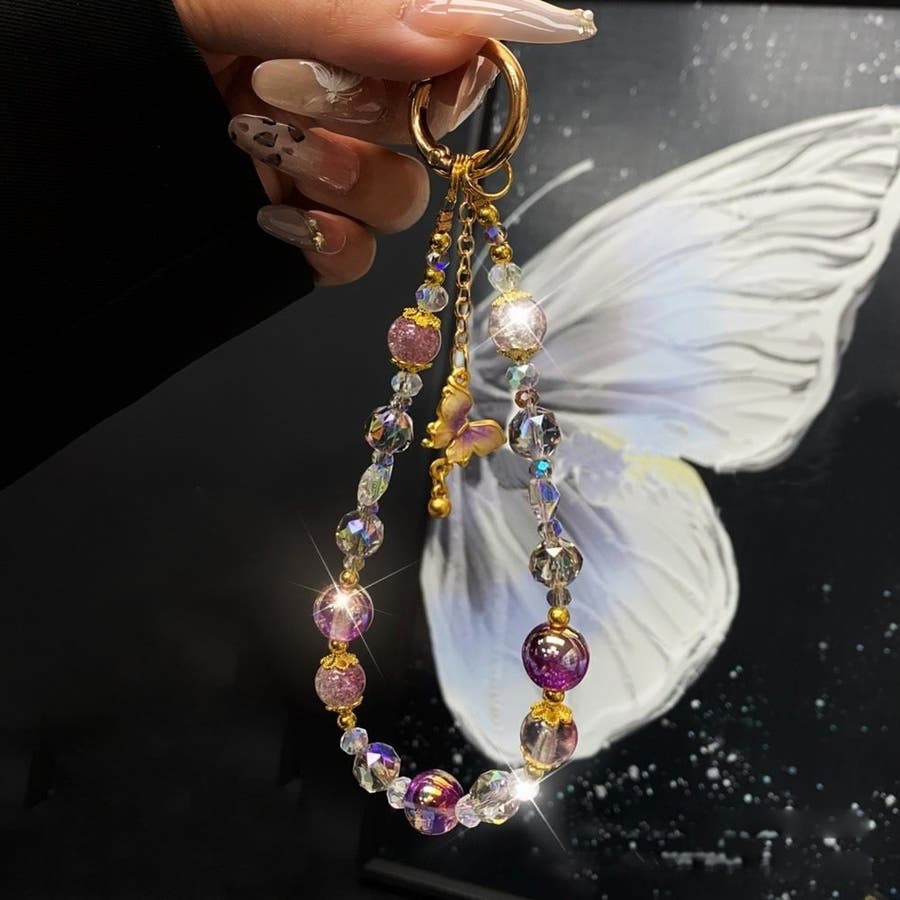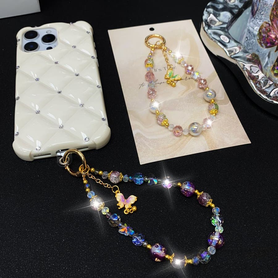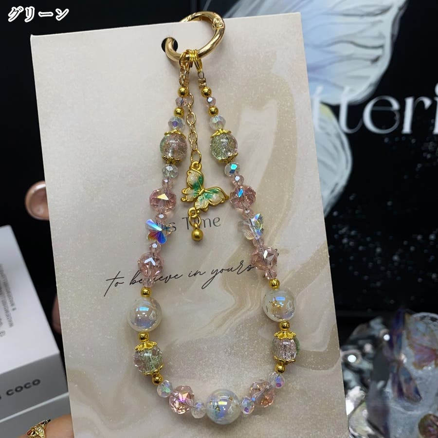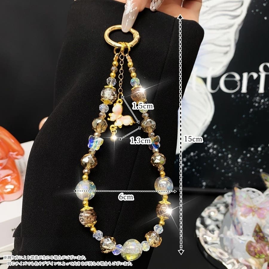 大きめのビーズや、蝶のチャームがとってもキュート。