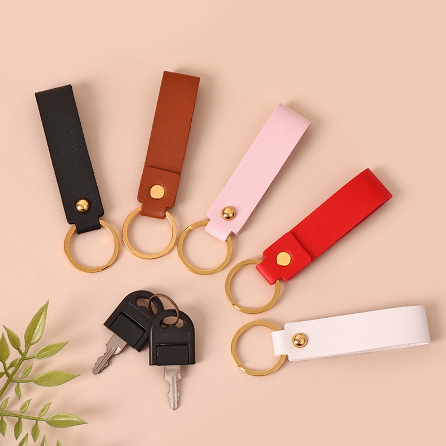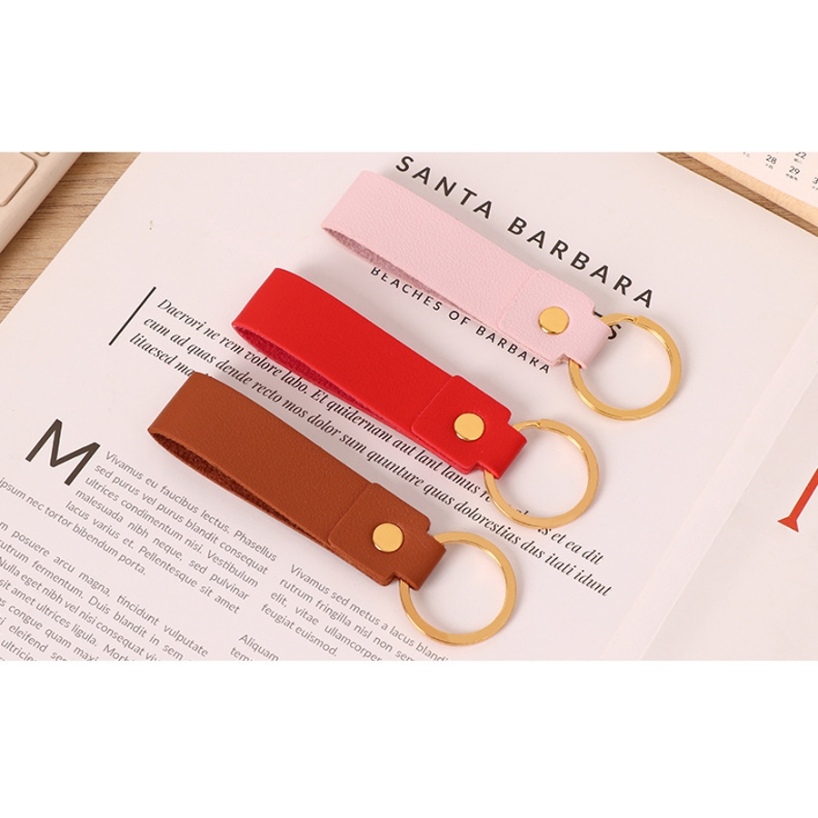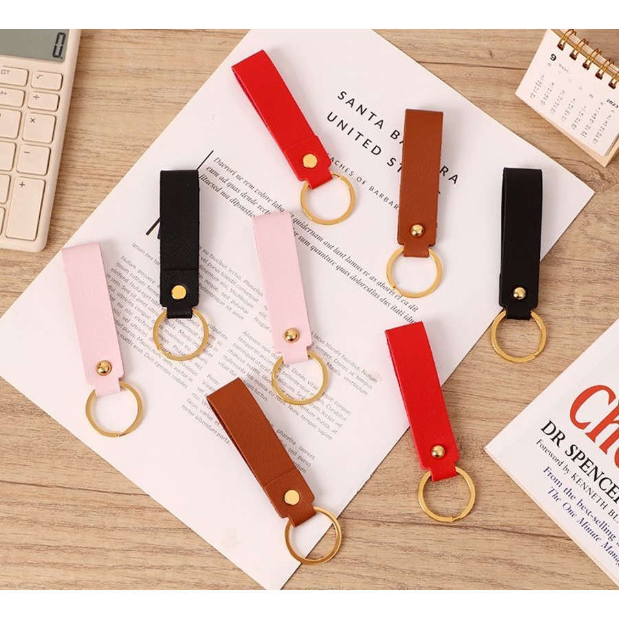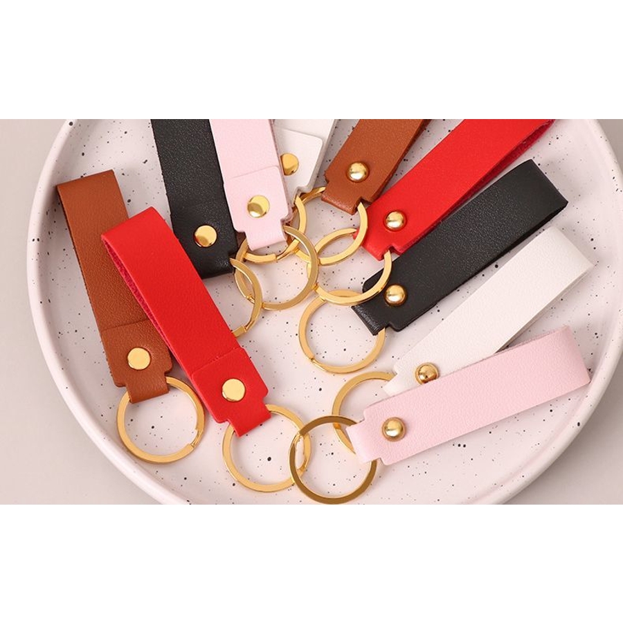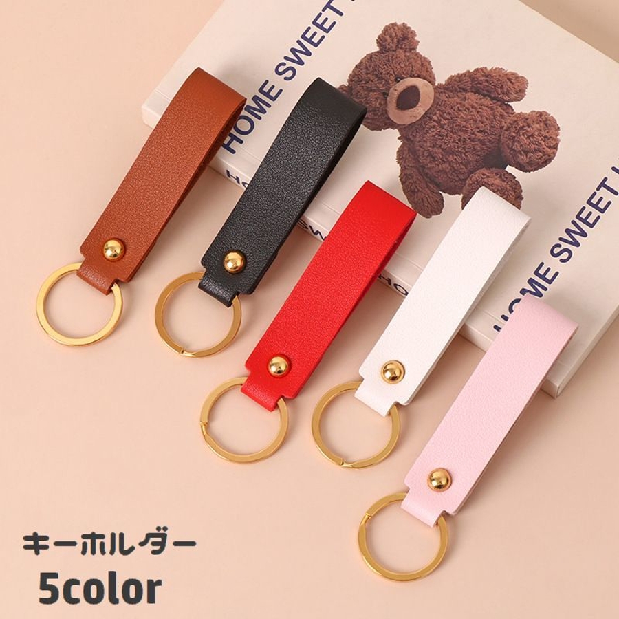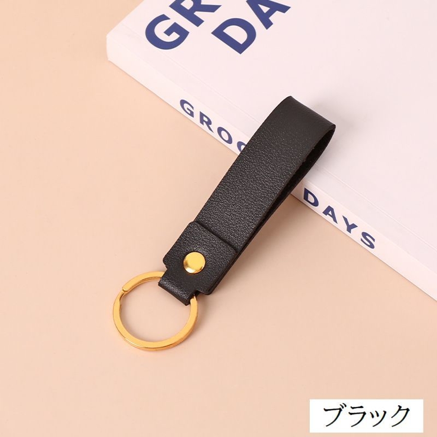 レザー調の質感がおしゃれなリング付きキーホルダーです。