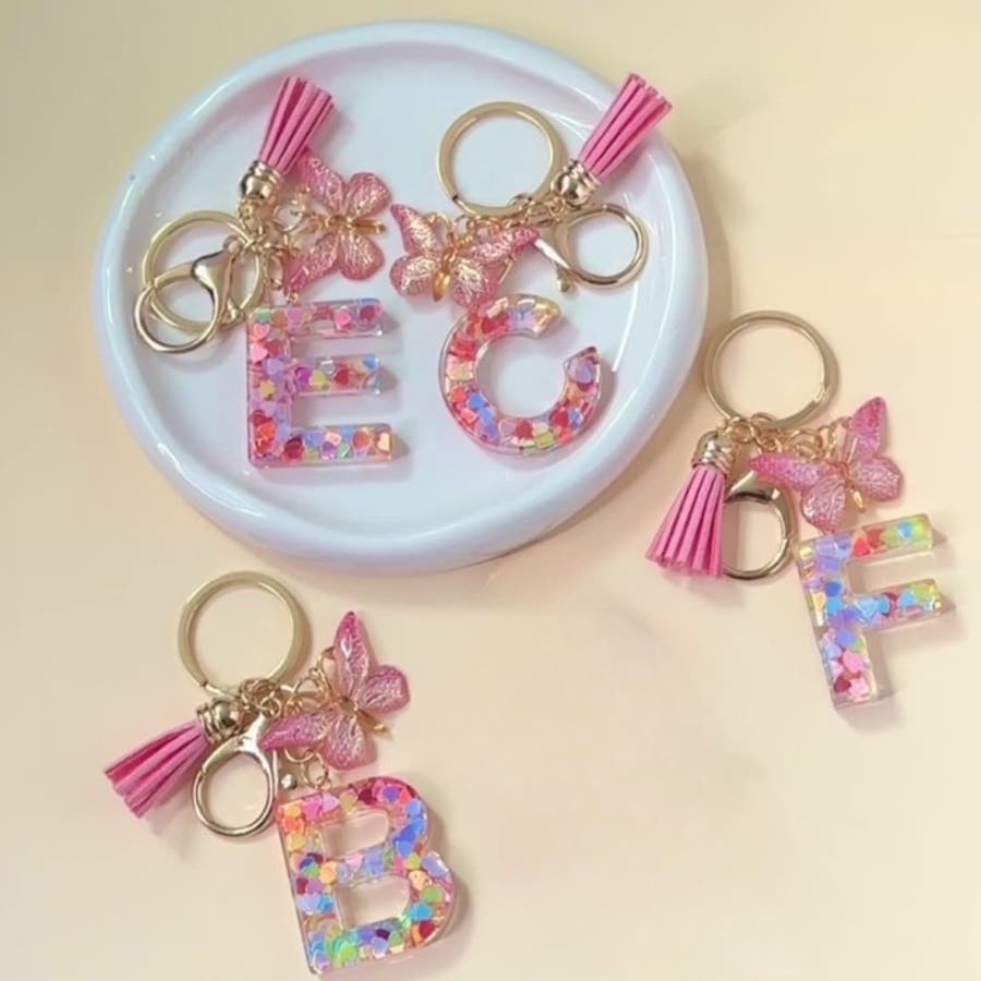かわいいイニシャルデザインの、バッグチャームです。