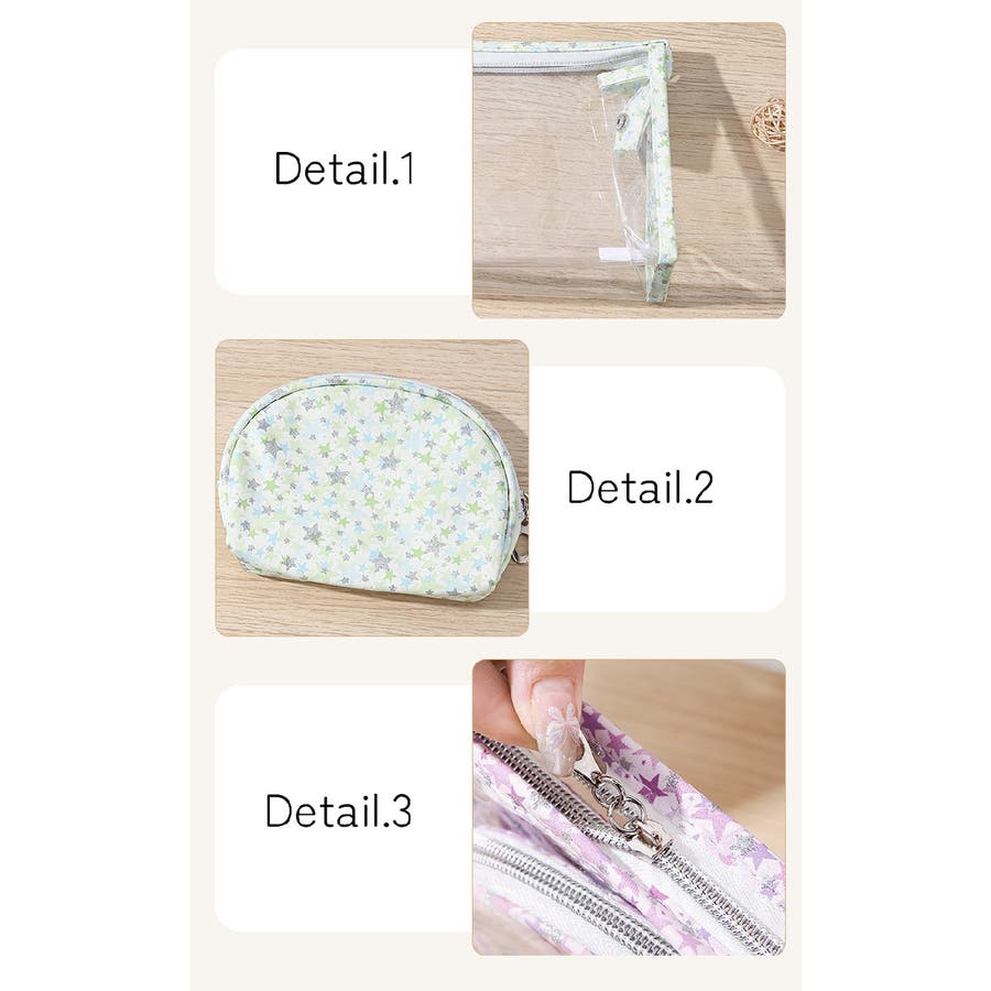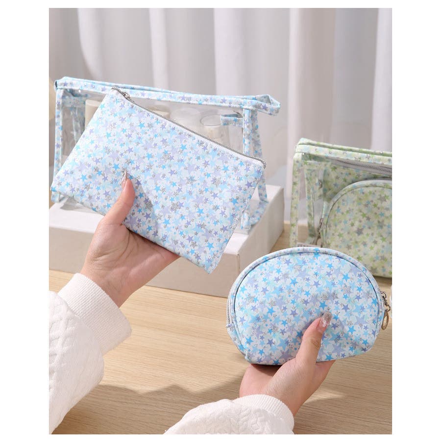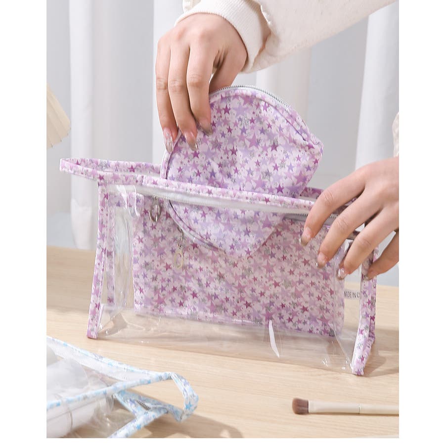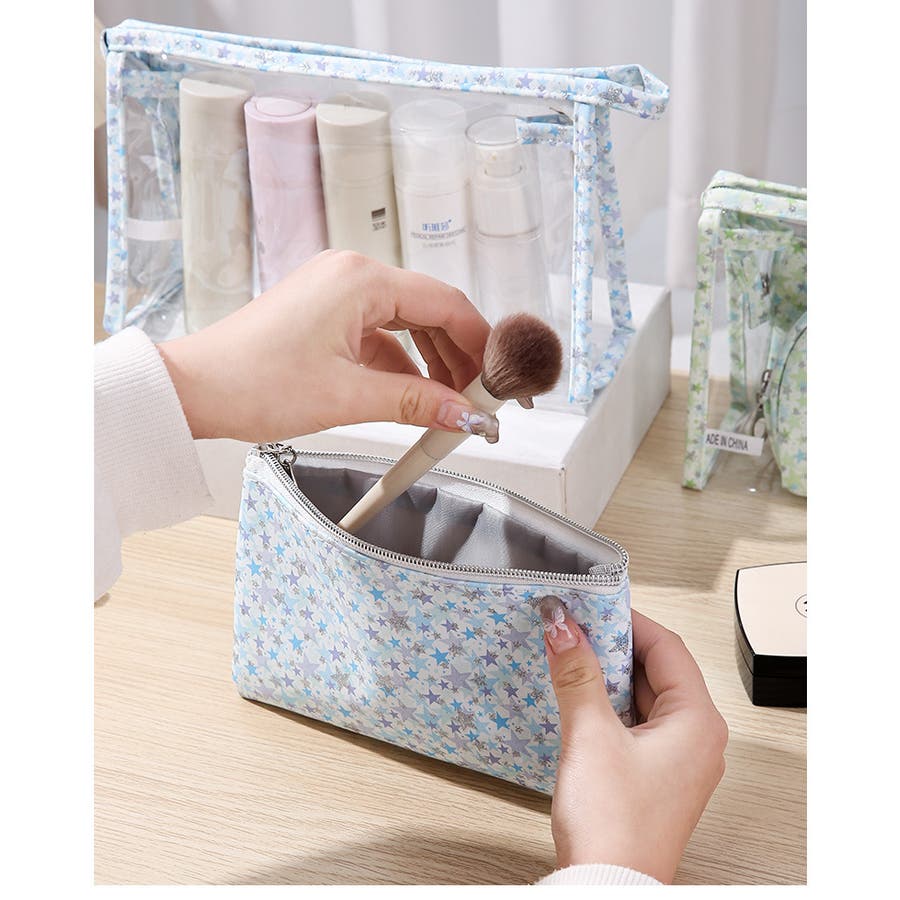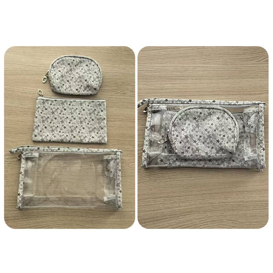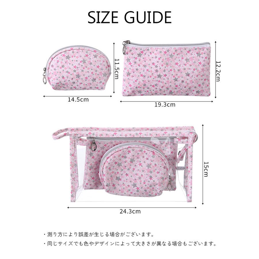 クリアバッグと2種類のポーチによって、洗面用品やメイク道具などを分けて旅行に持っていくことができます。