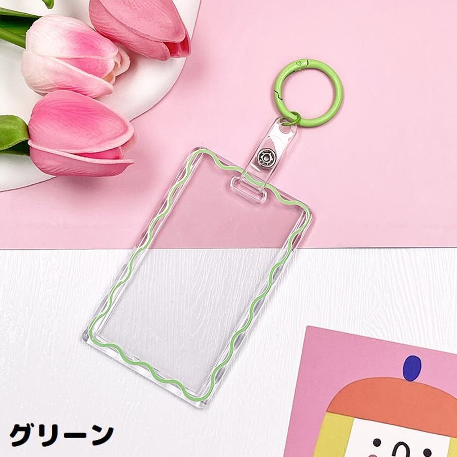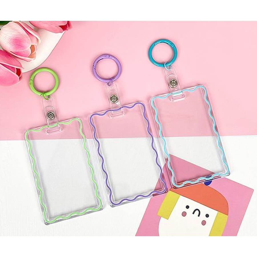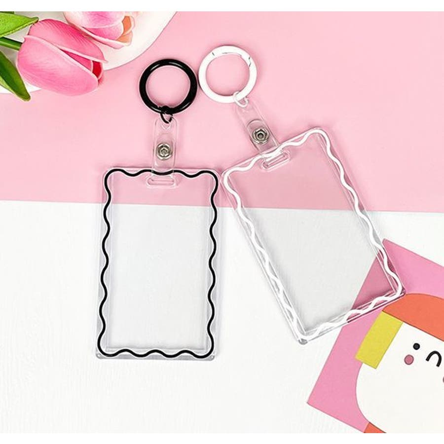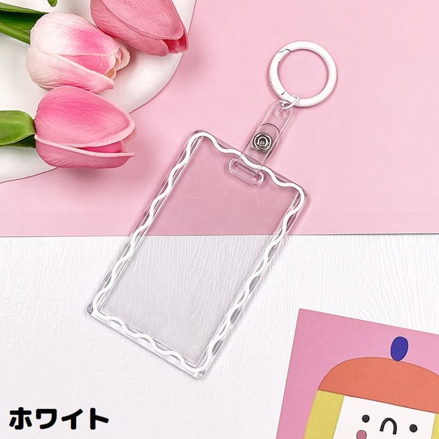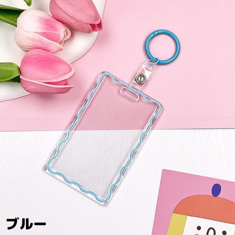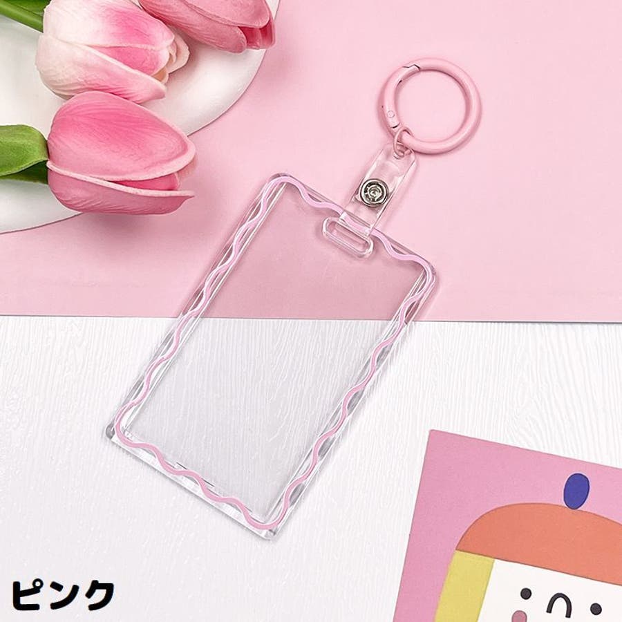 丸型カラビナ付きのアクリル製パスケースです。