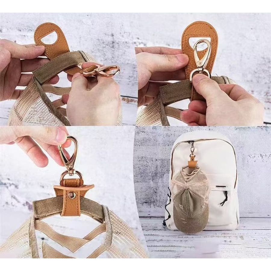 カラビナ付きで、バッグに帽子を吊り下げられる便利なアイテムです♪