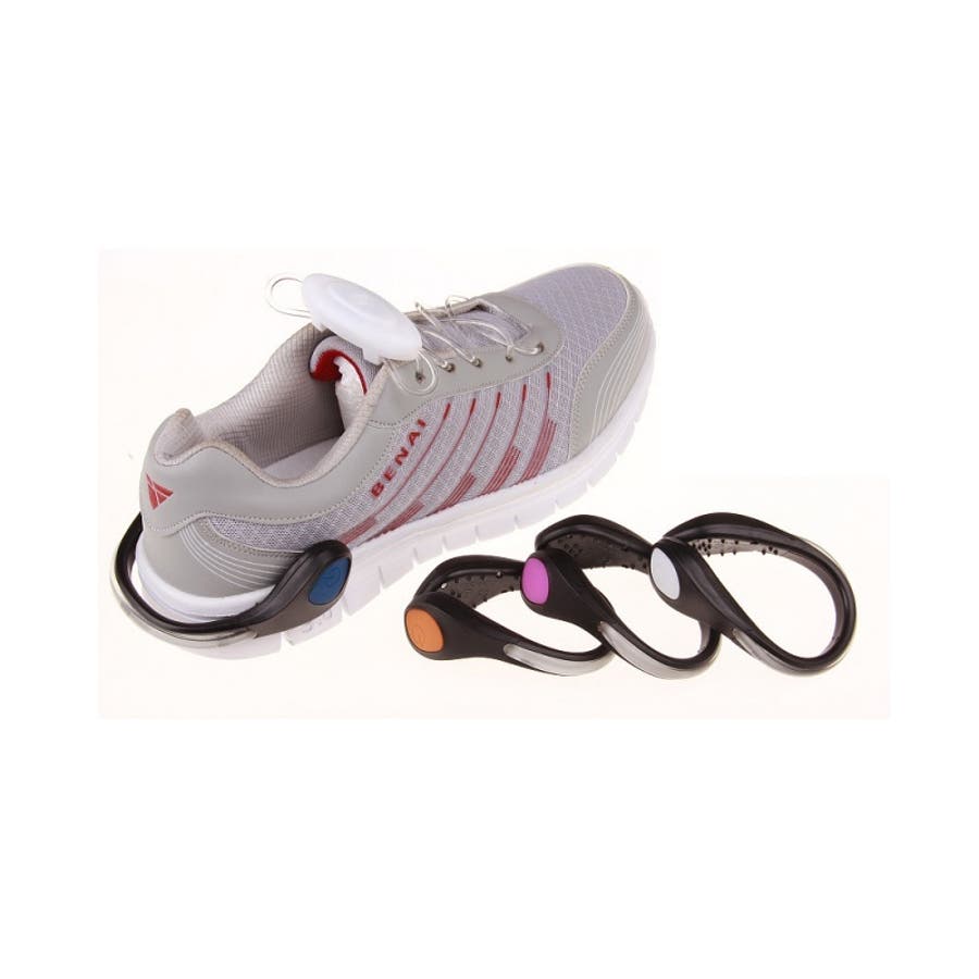 靴に挟むだけで使える、点灯・点滅機能付きのLEDシューズクリップです。