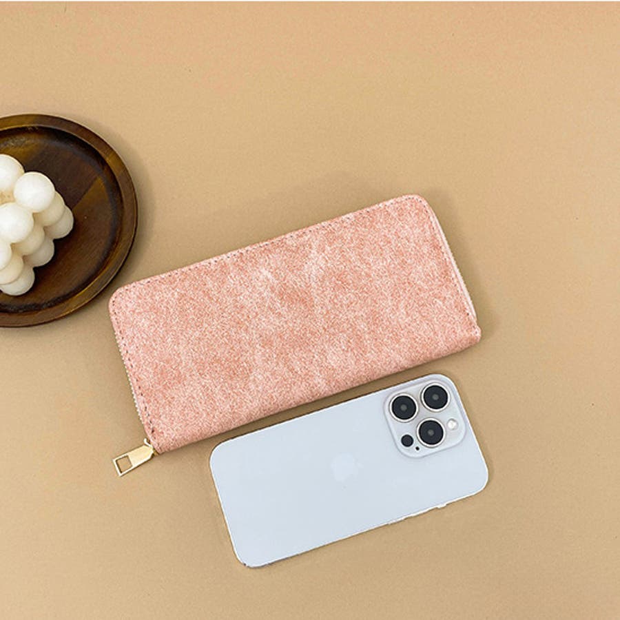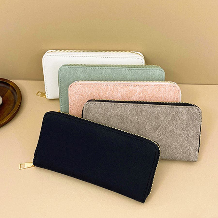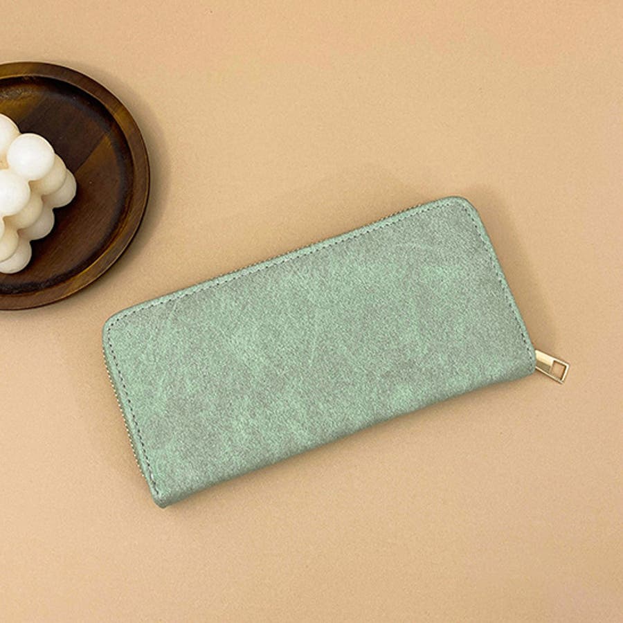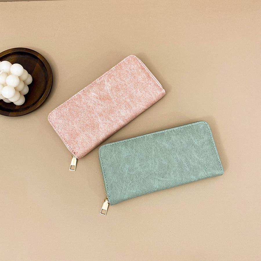 シンプル無地なデザインのレザー調の長財布です。