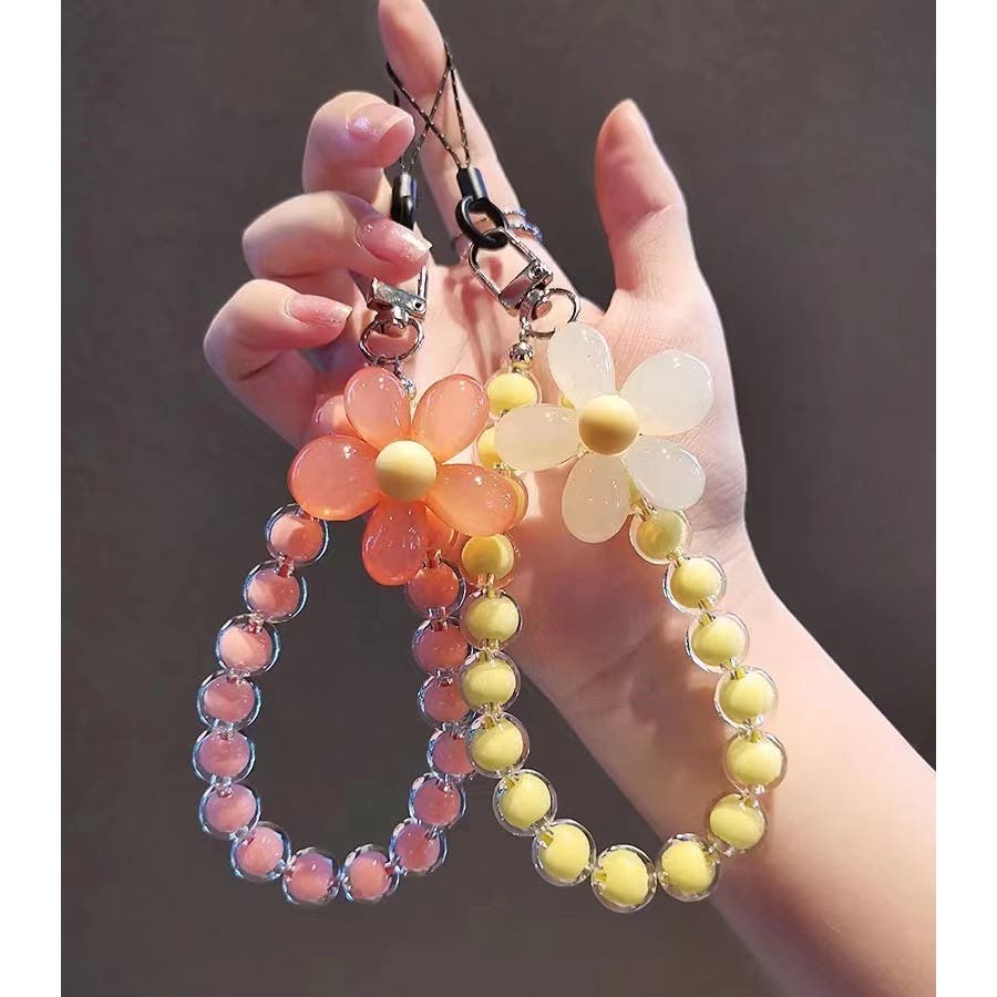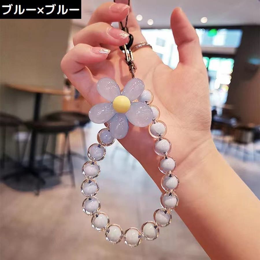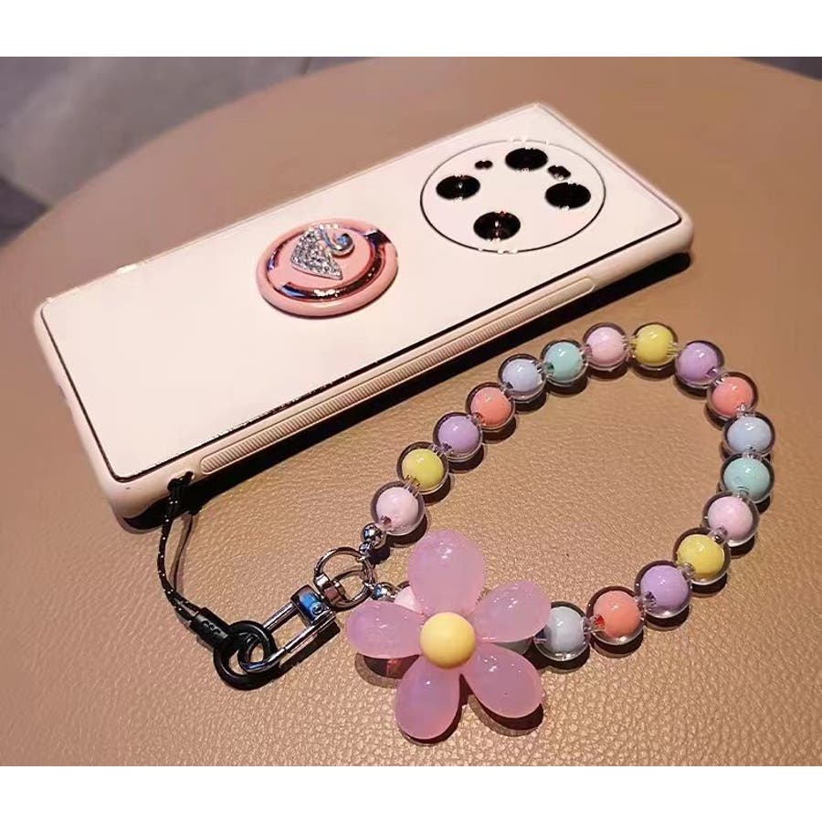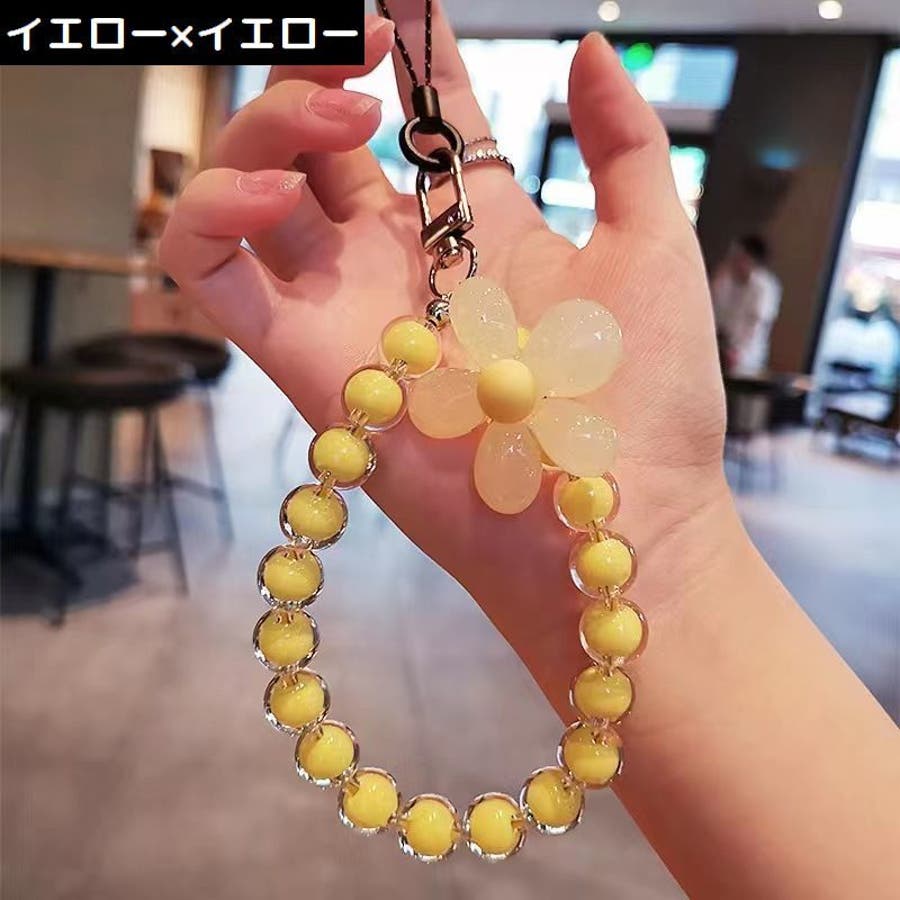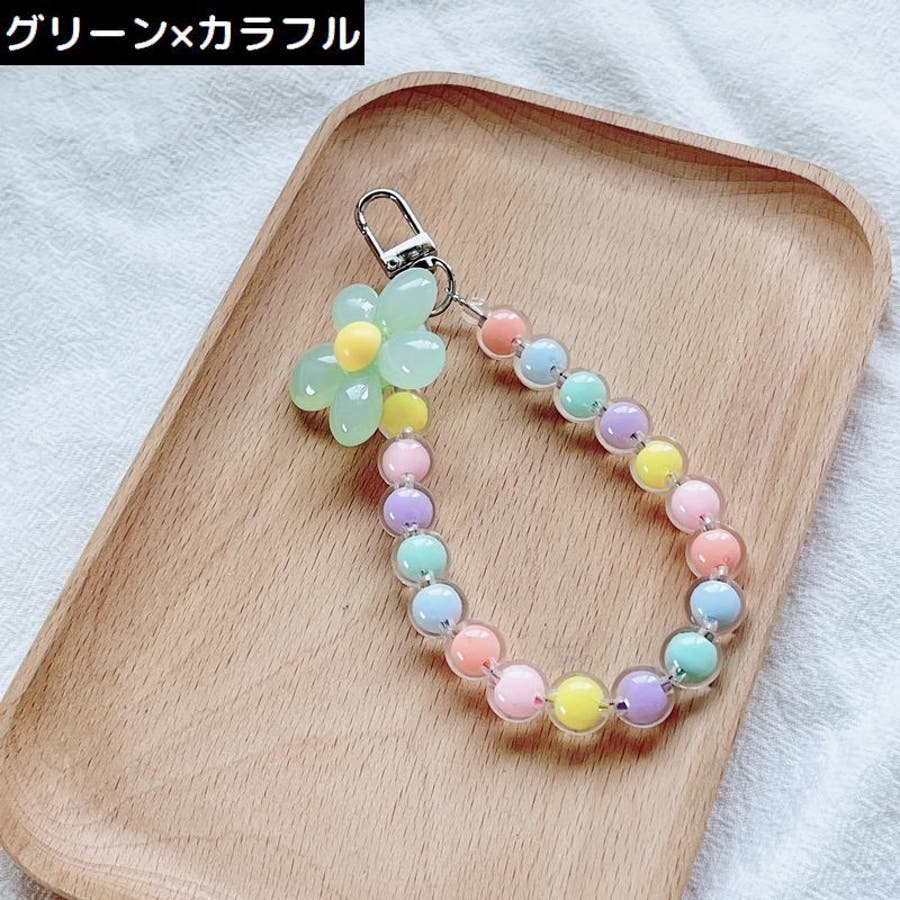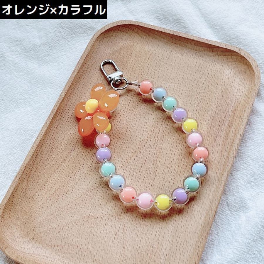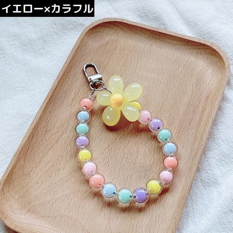 可愛いお花チャーム&カラービーズのスマホリングブレスレットです。