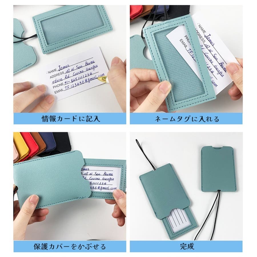 スーツケースやバッグに取り付けられ、名前や住所を記載できるカード付き。