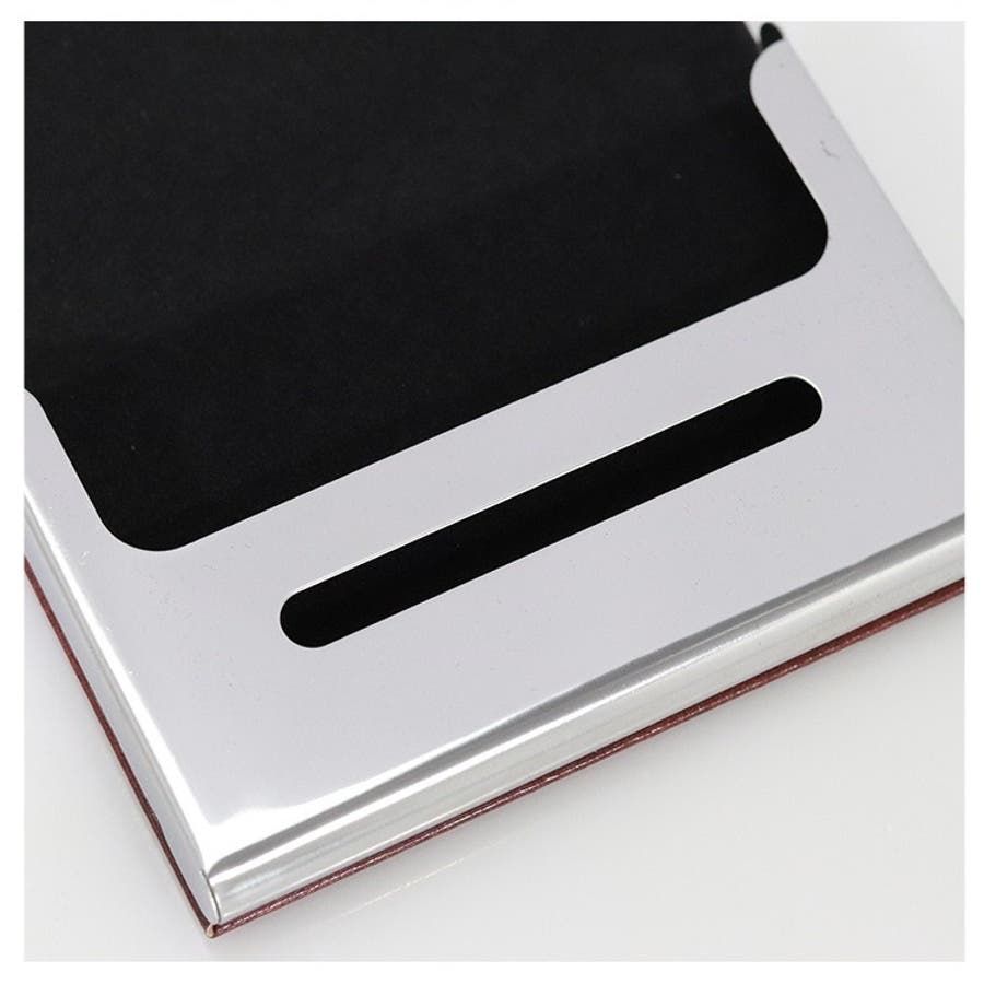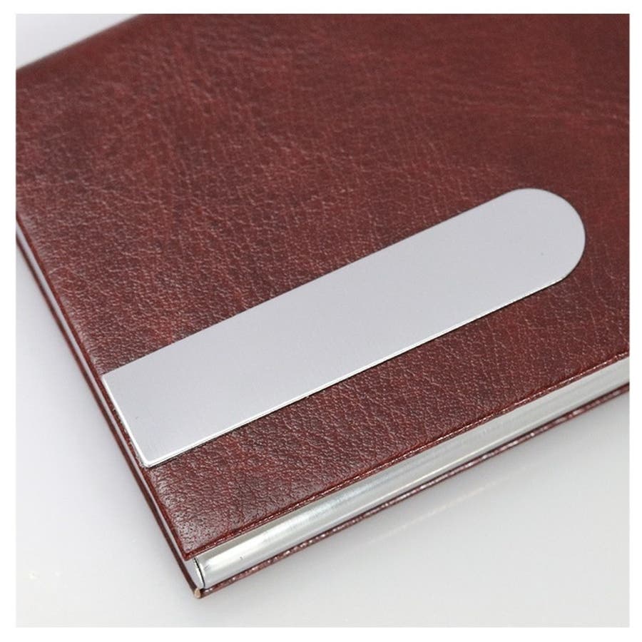 フェイクレザーとステンレスの組み合わせがスタイリッシュな名刺入れです。