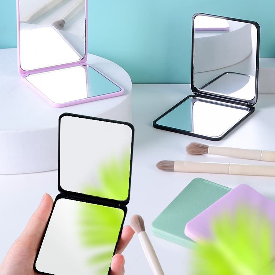 両面タイプの折りたたみ式コンパクトミラーです。