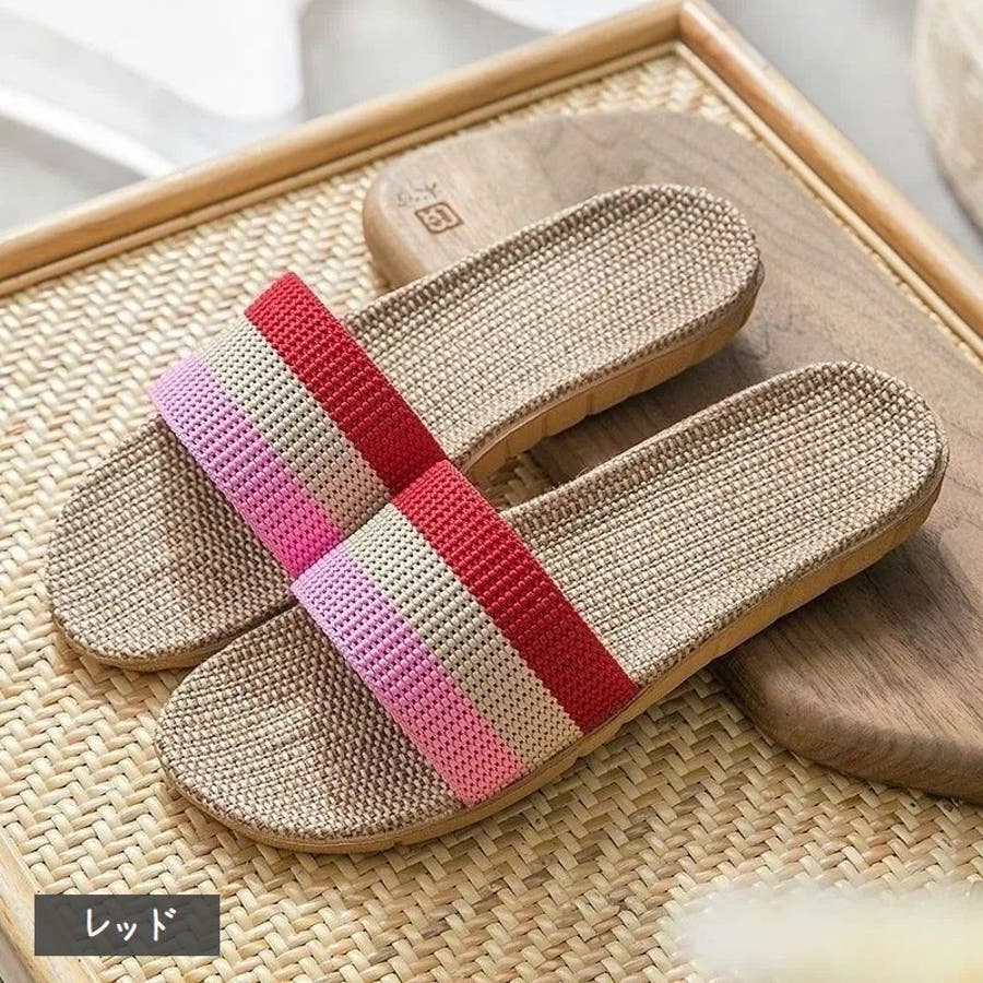 トリコロールカラーの爽やか&おしゃれな前あきスリッパ。