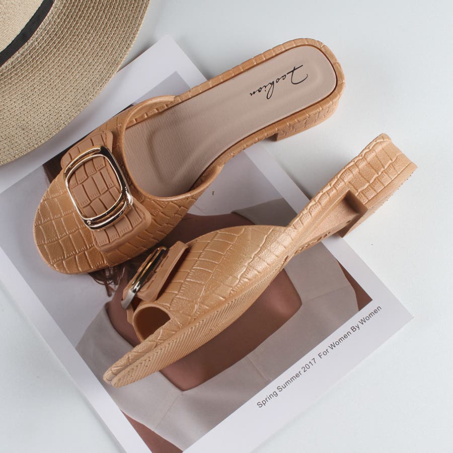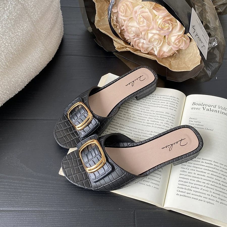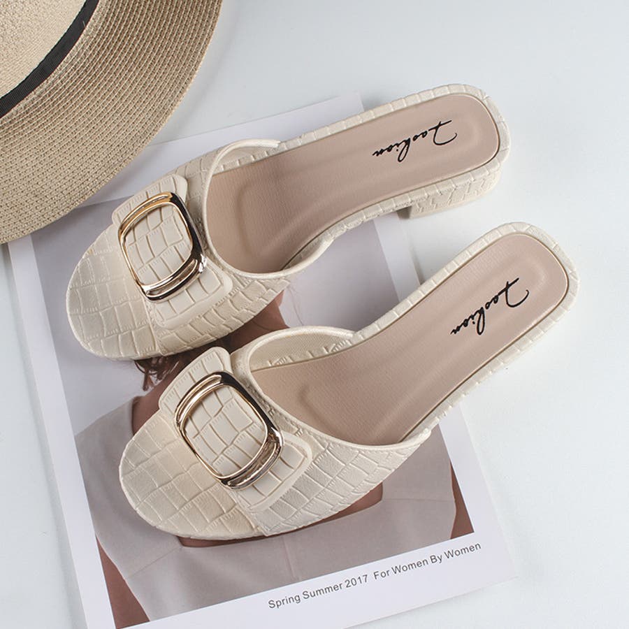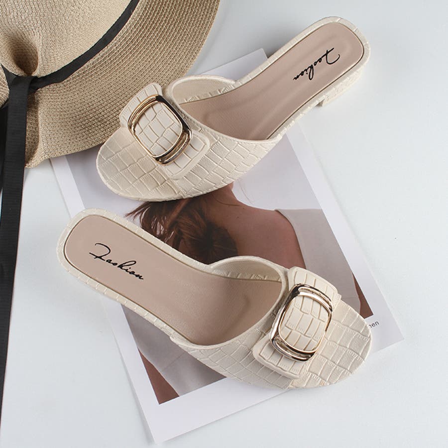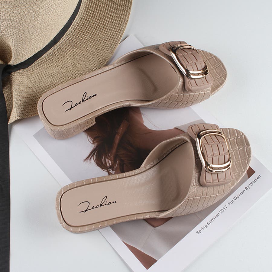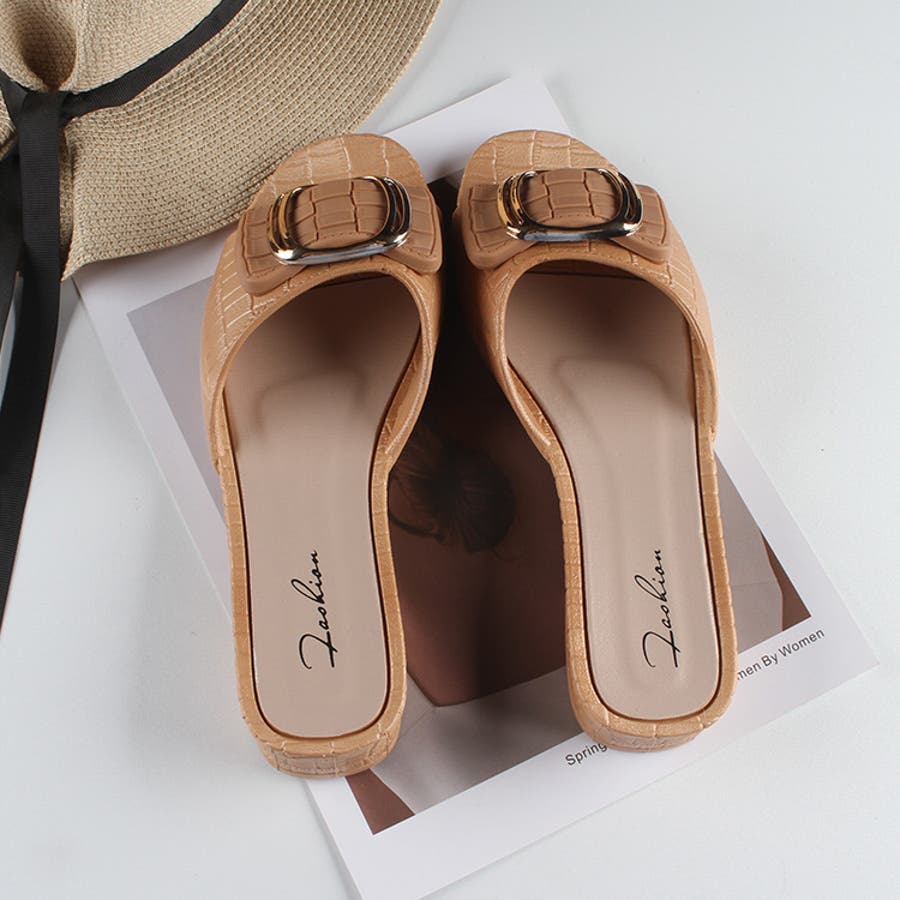 リングのデザインが目を引くレディース用のミュールサンダルです。