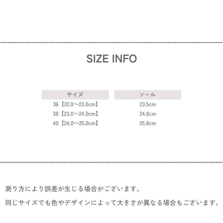 | サイズ | 36【22.0~23.0cm】 / 38【23.0~24.0cm】 / 40【24.0~25.0cm】 |
