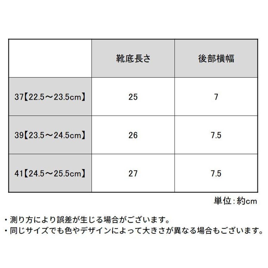 | サイズ | 37【22.5~23.5cm】 / 39【23.5~24.5cm】 / 41【24.5~25.5cm】 |