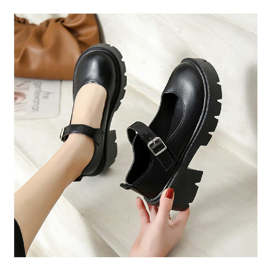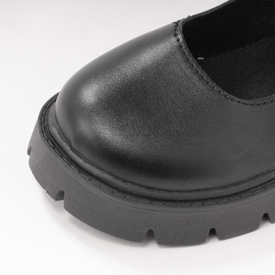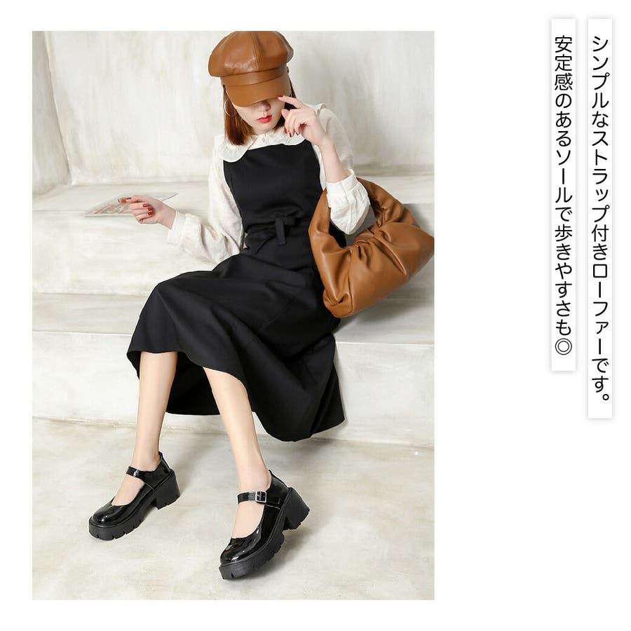 コーディネートを問わず合わせやすい、シンプルなストラップ付きローファーです。