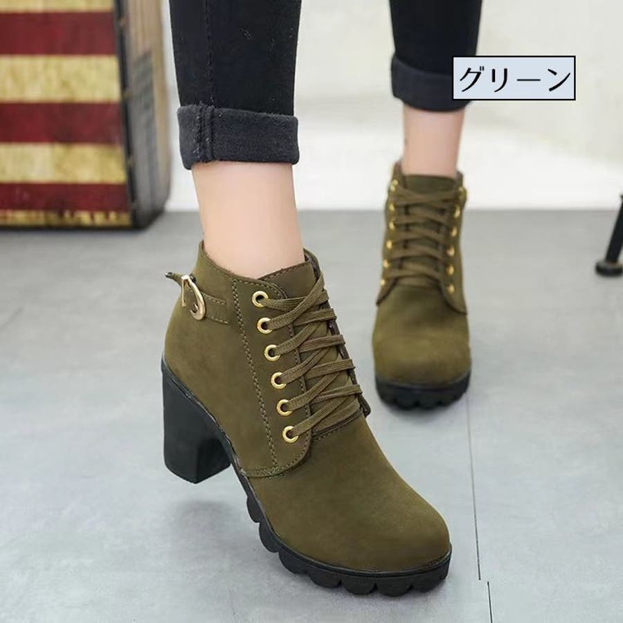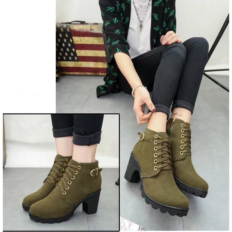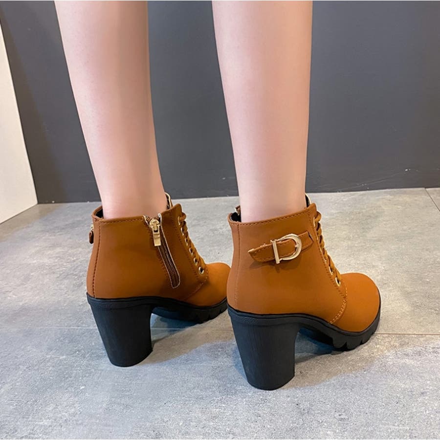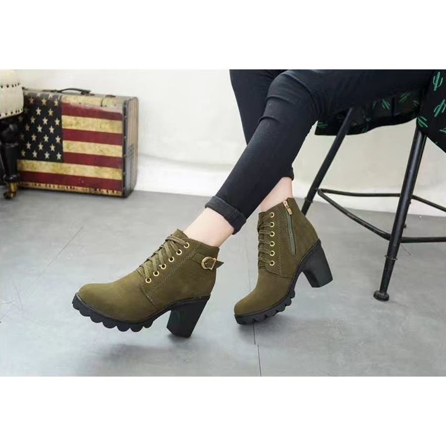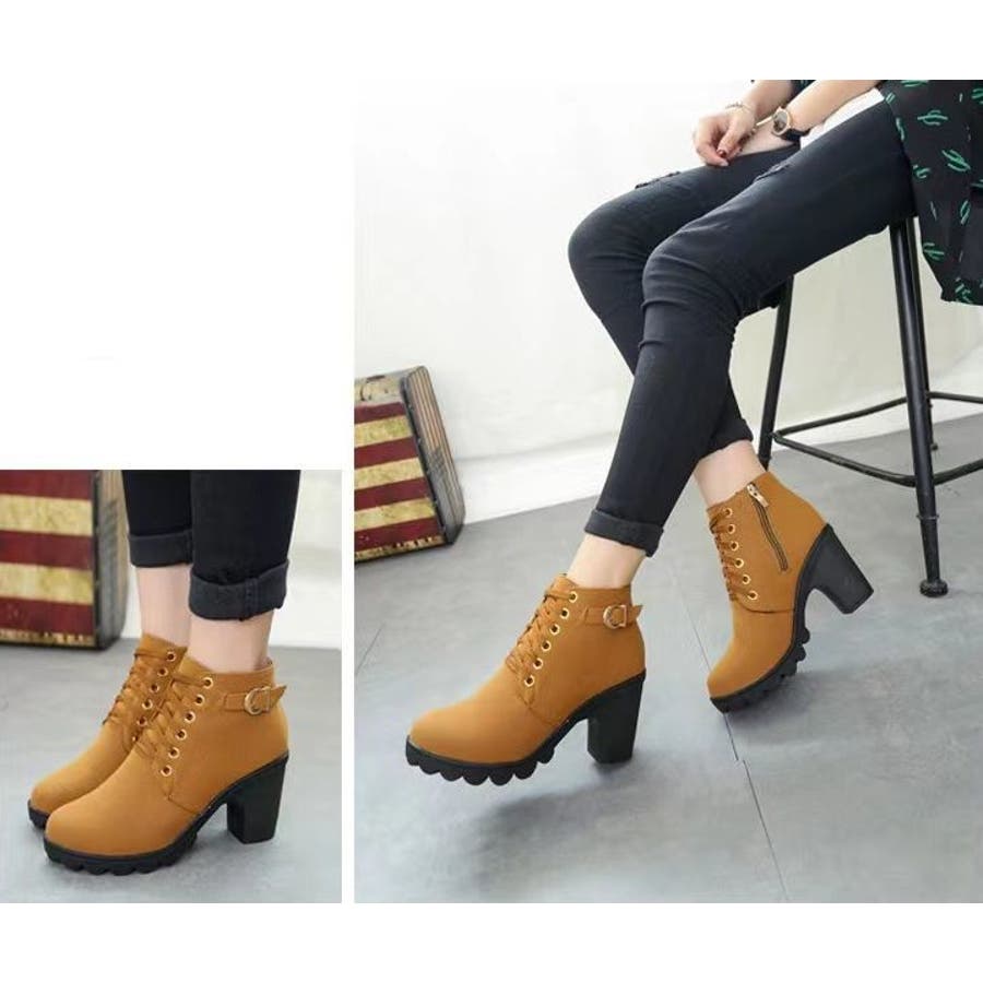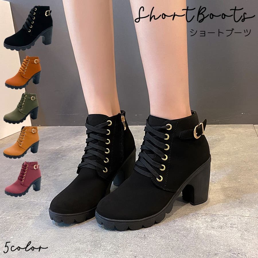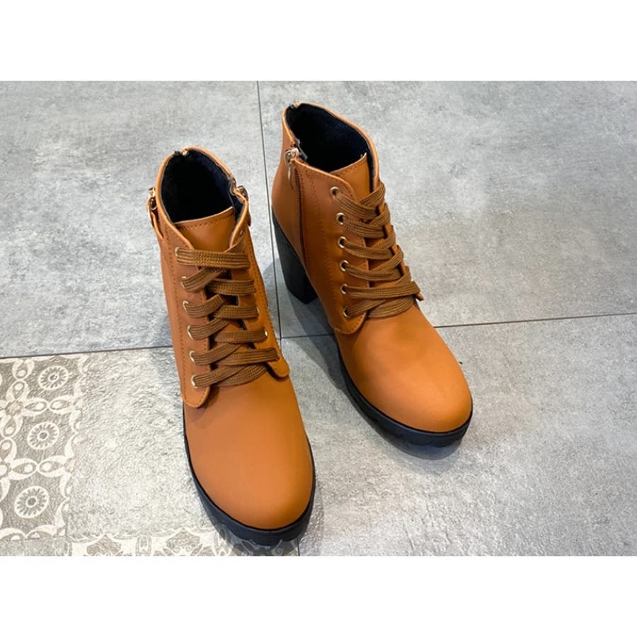 ショートブーツ サイドファスナー レースアップ