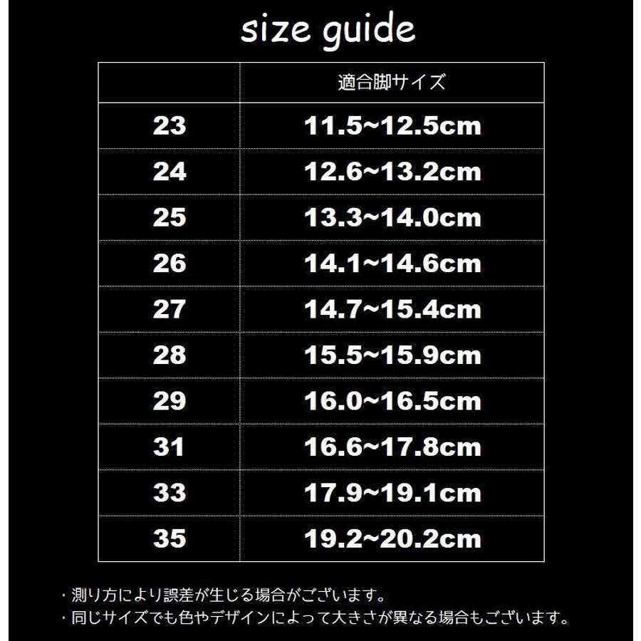 | サイズ | 23【11.5-12.5cm】 / 24【12.6-13.2cm】 / 25【13.3-14cm】 / 26【14.1-14.6cm】 / 27【14.7-15.4cm】 / 28【15.5-15.9cm】 / 29【16-16.5cm】 / 31【16.6-17.8cm】 / 33【17.9-19.1cm】 / 35【19.2-20.2cm】 |