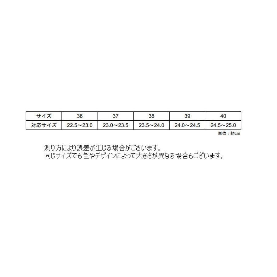 サイズ | 36【22.5~23.0cm】 / 37【23.0~23.5cm】 / 38【23.5~24.0cm】 / 39【24.0~24.5cm】 / 40【24.5~25.0cm】 |