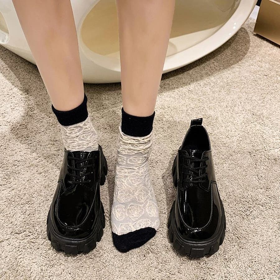 厚底ミドルヒールのレディース用オックスフォードシューズです。