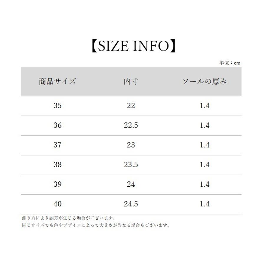 サイズ | 36【22cm】 / 37【22.5cm】 / 38【23cm】 / 39【23.5cm】 / 40【24cm】 |