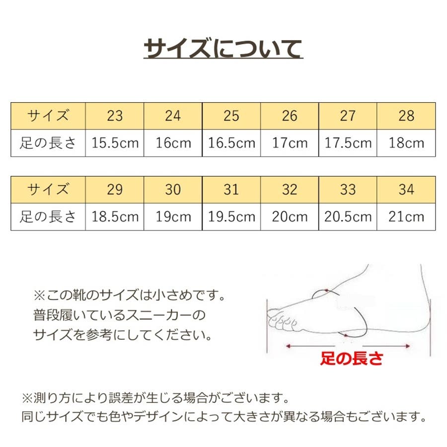 | サイズ | 23【15.5cm】 / 24【16cm】 / 25【16.5cm】 / 26【17cm】 / 27【17.5cm】 / 28【18cm】 / 29【18.5cm】 / 30【19cm】 / 31【19.5cm】 / 32【20cm】 / 33【20.5cm】 / 34【21cm】 |