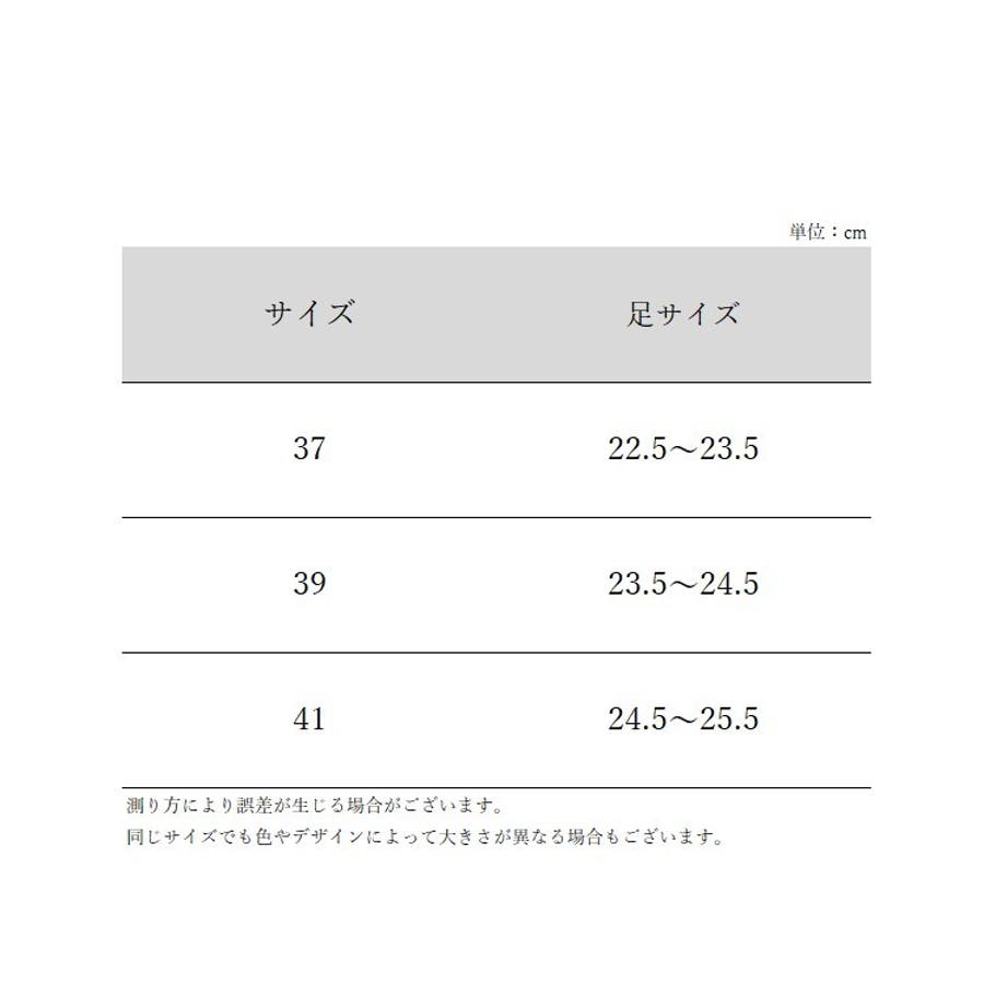 | サイズ | 37【22.5~23.5cm】 / 39【23.5~24.5cm】 / 41【24.5~25.5cm】 |
