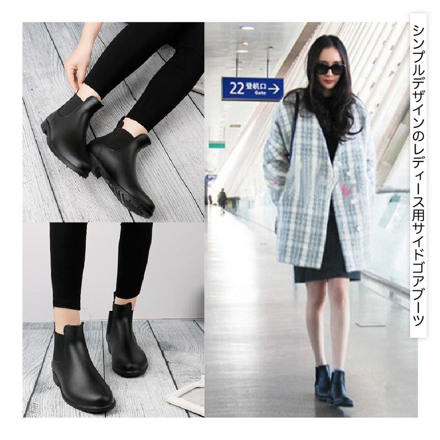 シンプルデザインのレディース用サイドゴアブーツです。