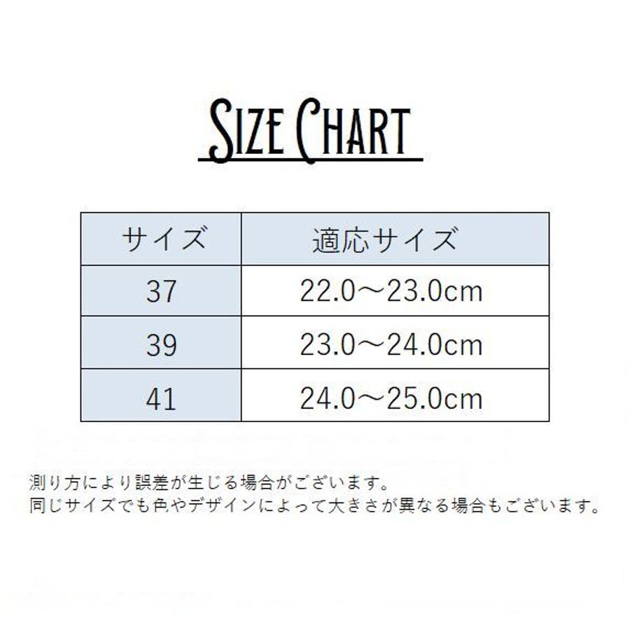 | サイズ | 37【22.0~23.0cm】 / 39【23.0~24.0cm】 / 41【24.0~25.0cm】 |