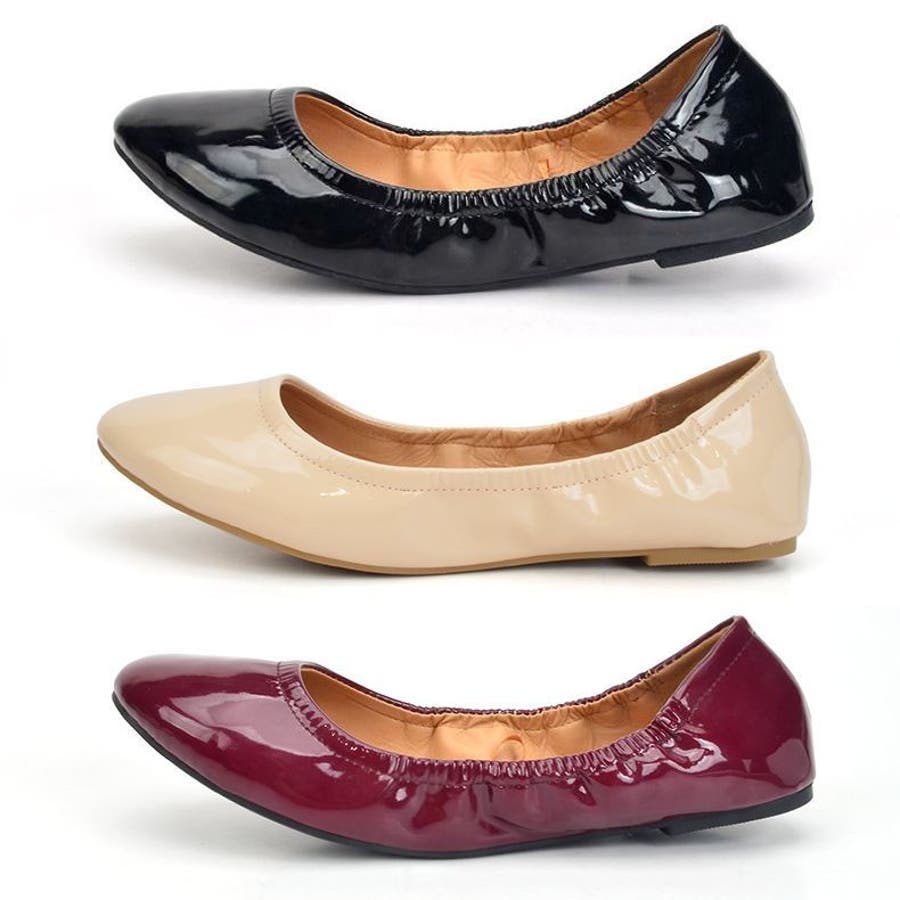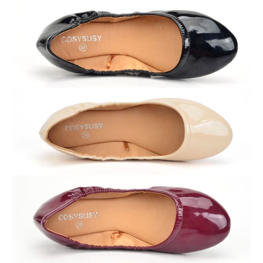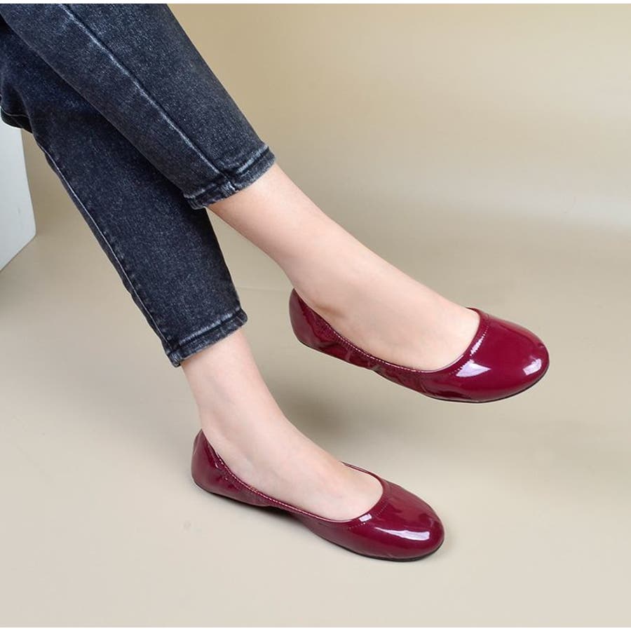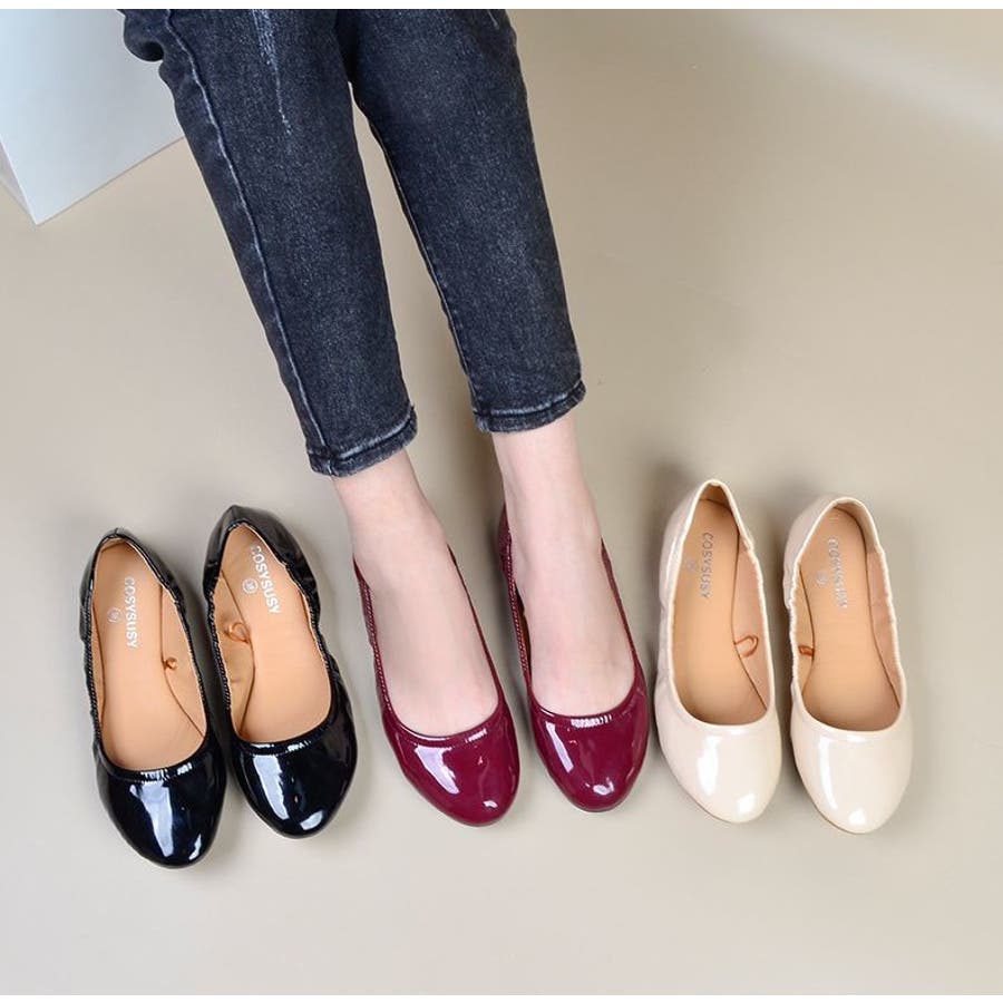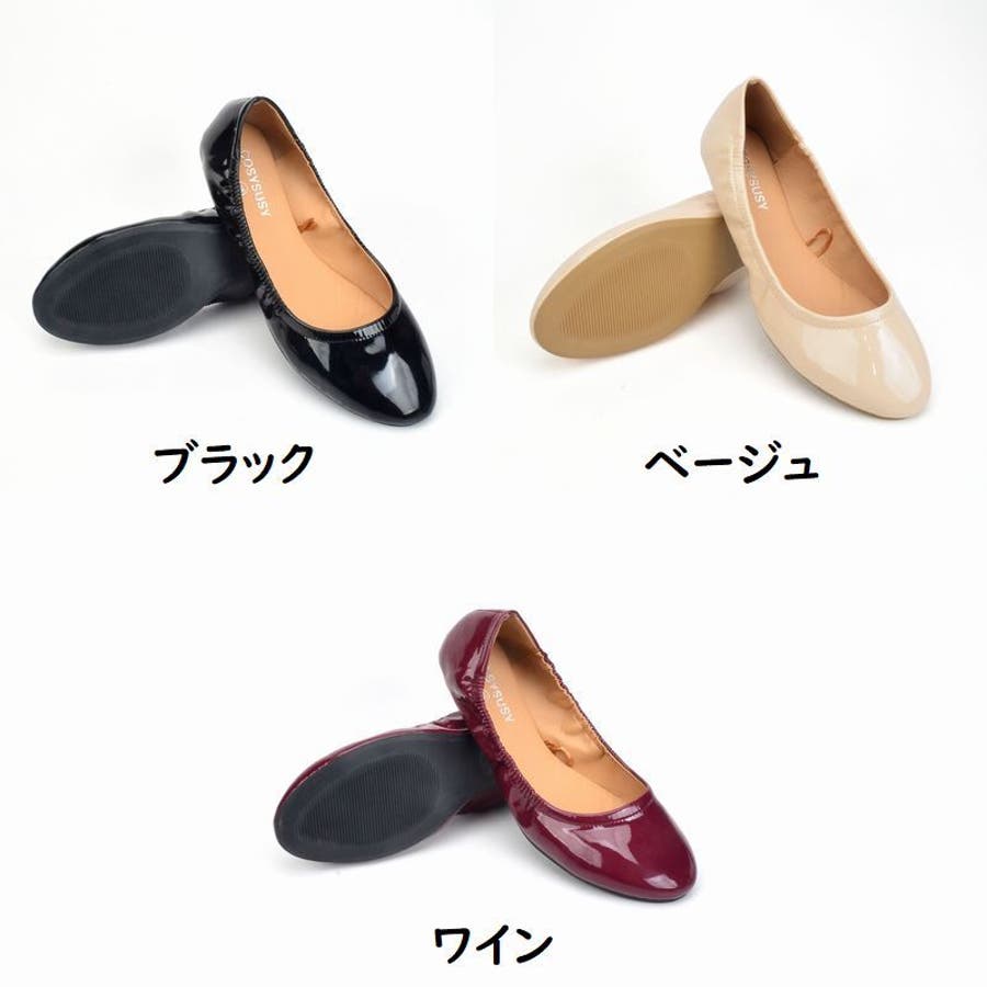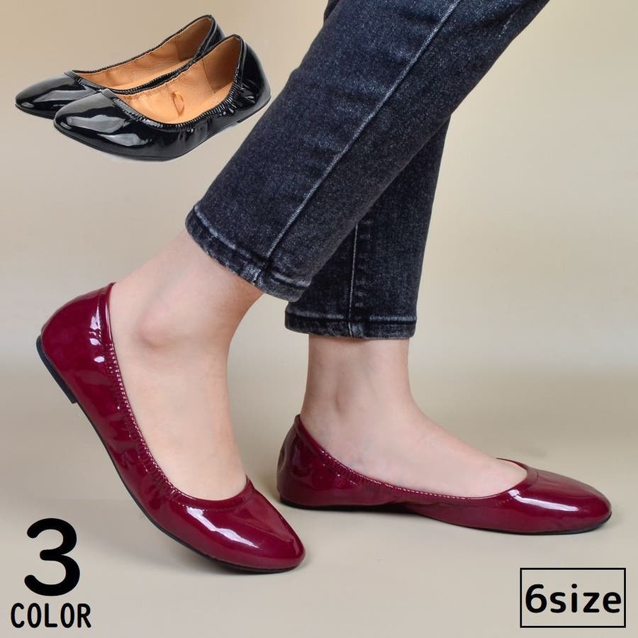 光沢感のあるエナメルレザー調のレディース用パンプスです。