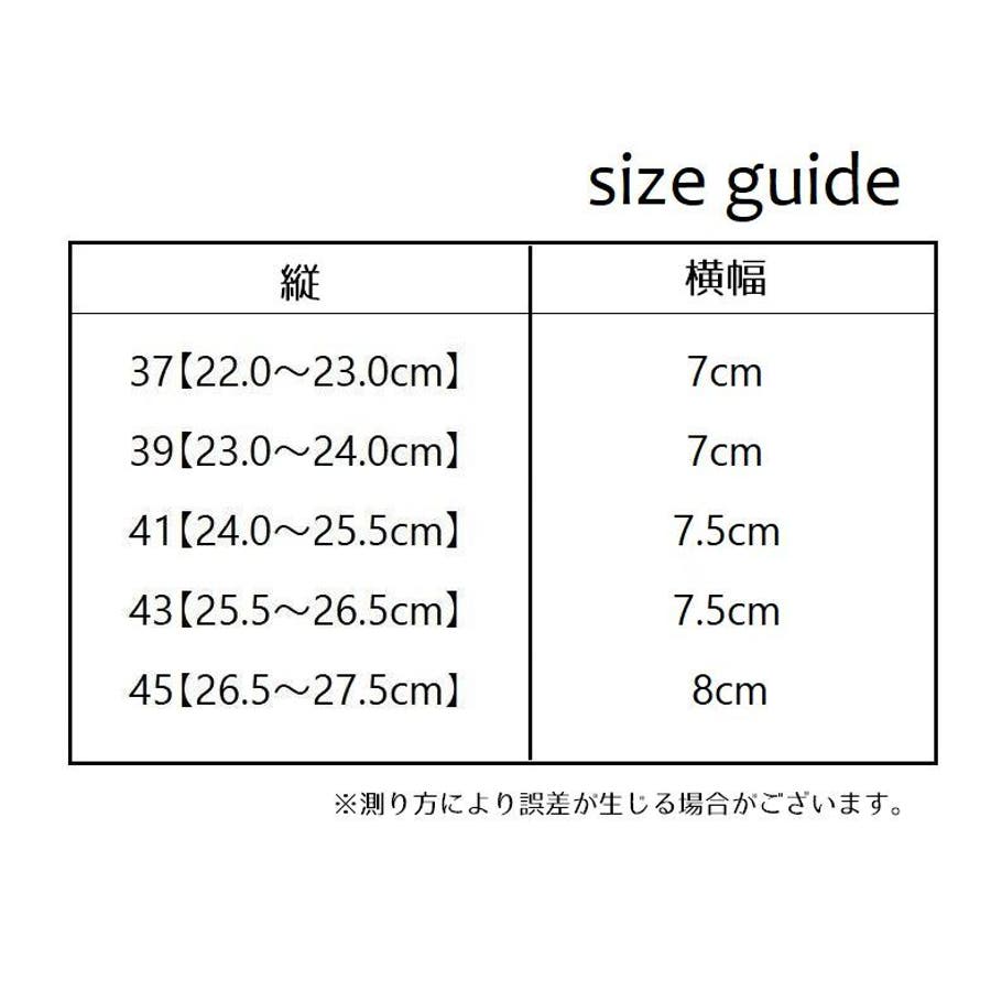 | サイズ | 37【22.0~23.0cm】 / 39【23.0~24.0cm】 / 41【24.0~25.5cm】 / 43【25.5~26.5cm】 / 45【26.5~27.5cm】 |