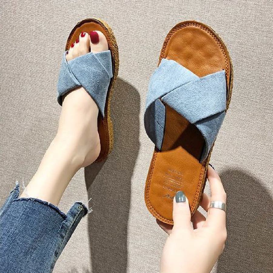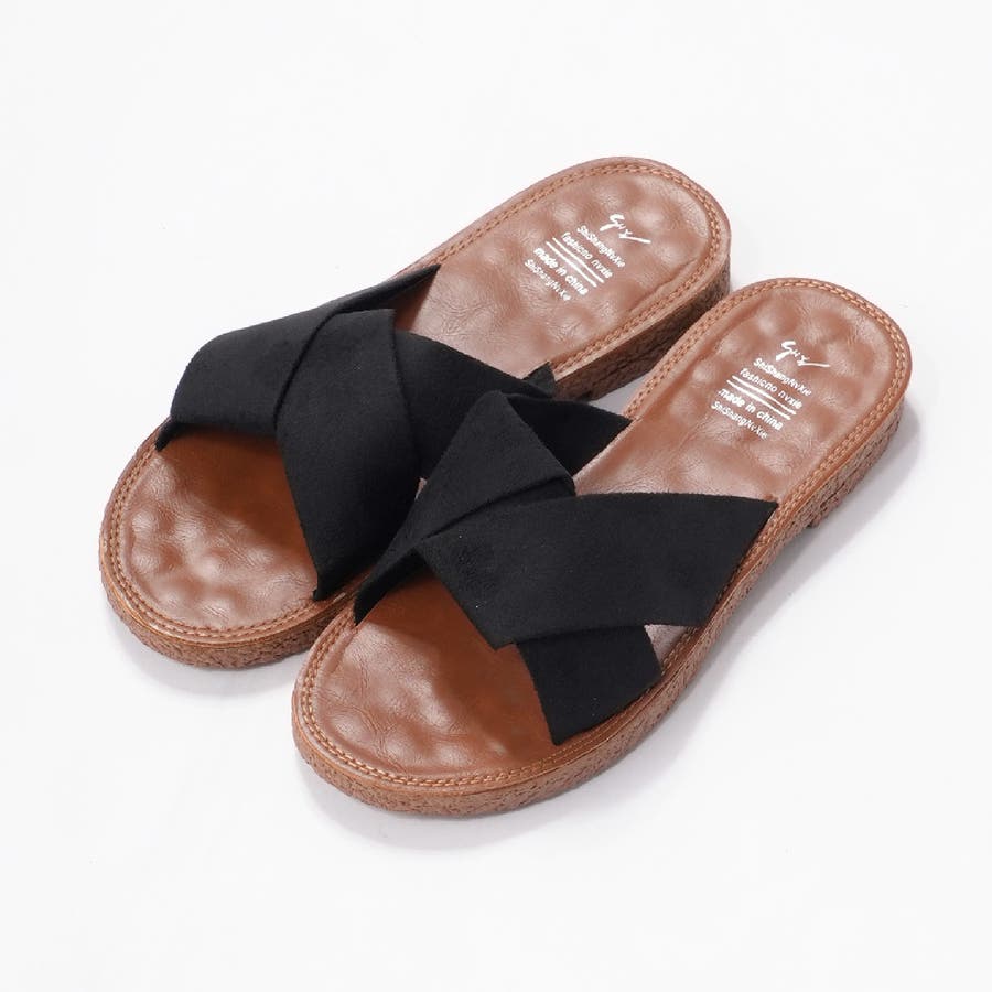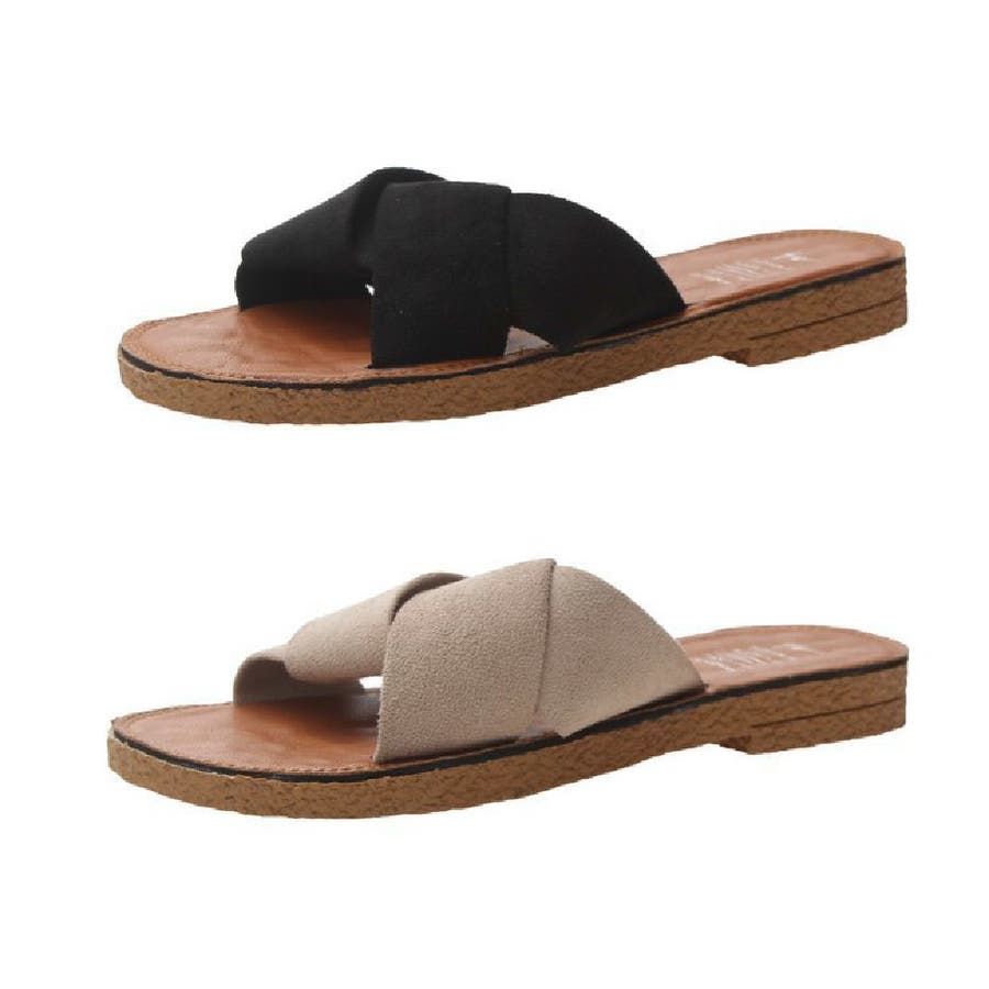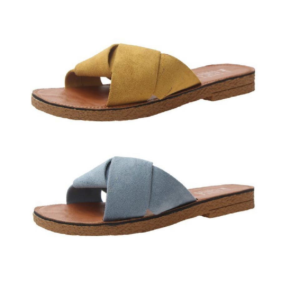 ぺたんこヒールのレディース用ミュールサンダルです。