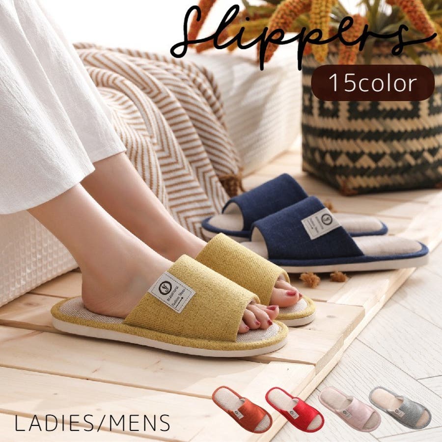 室内履きにぴったりの男女兼用前開きスリッパです。