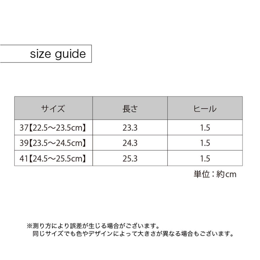 | サイズ | 37【22.5~23.5cm】 / 39【23.5~24.5cm】 / 41【24.5~25.5cm】 |