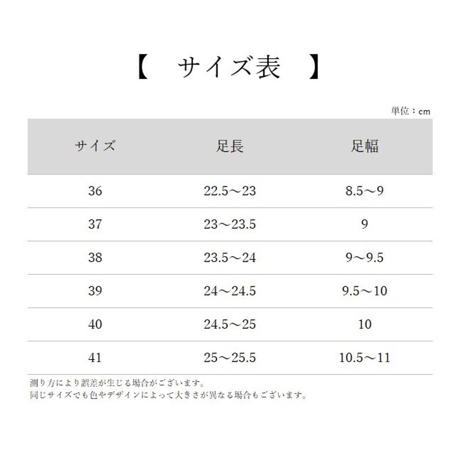 サイズ | 36【22.5~23.0cm】 / 37【23.0~23.5cm】 / 38【23.5~24.0cm】 / 39【24.0~24.5cm】 / 40【24.5~25.0cm】 / 41【25.0~25.5cm】 |