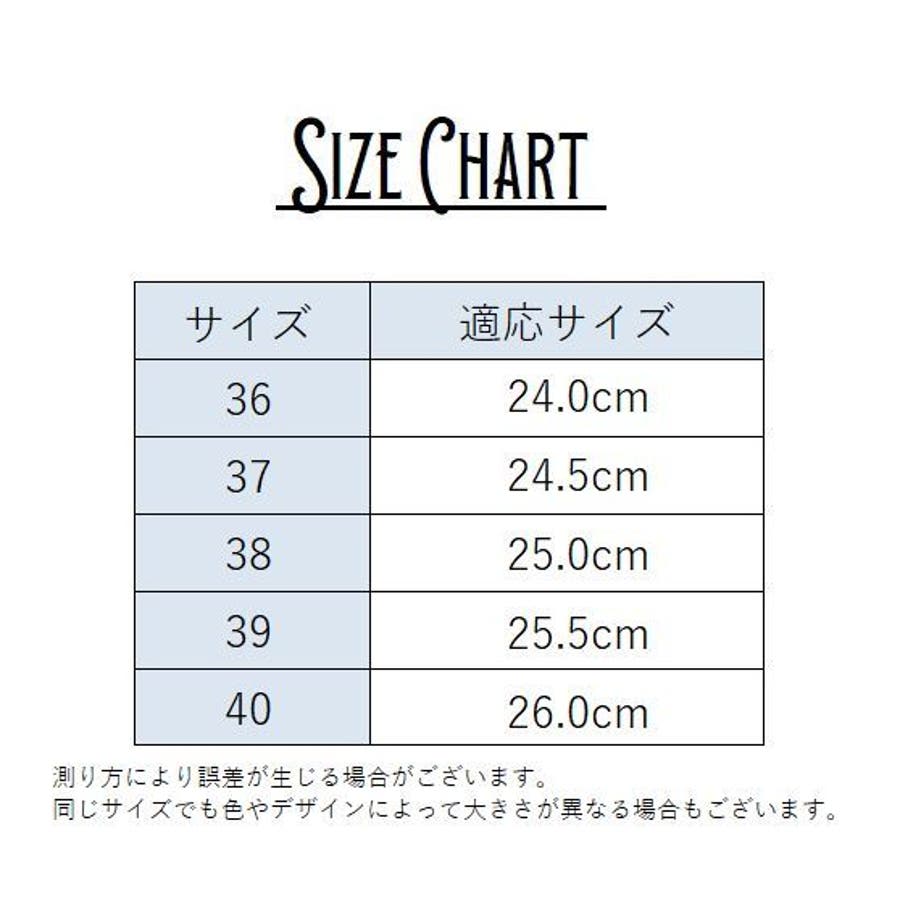 | サイズ | 36【24.0cm】 / 37【24.5cm】 / 38【25.0cm】 / 39【25.5cm】 / 40【26.0cm】 |