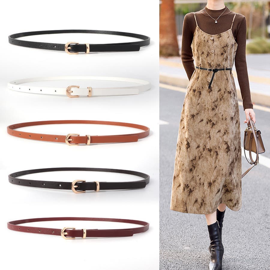 レザー調がおしゃれなレディース用の細ベルトです。