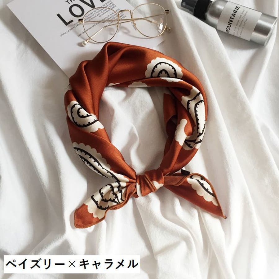 ドットの大きさ、そもそものスカーフの大きさは大判過ぎず、さりげなく首回り用に、めちゃくちゃつかいやすいです。他の柄も欲しいです。